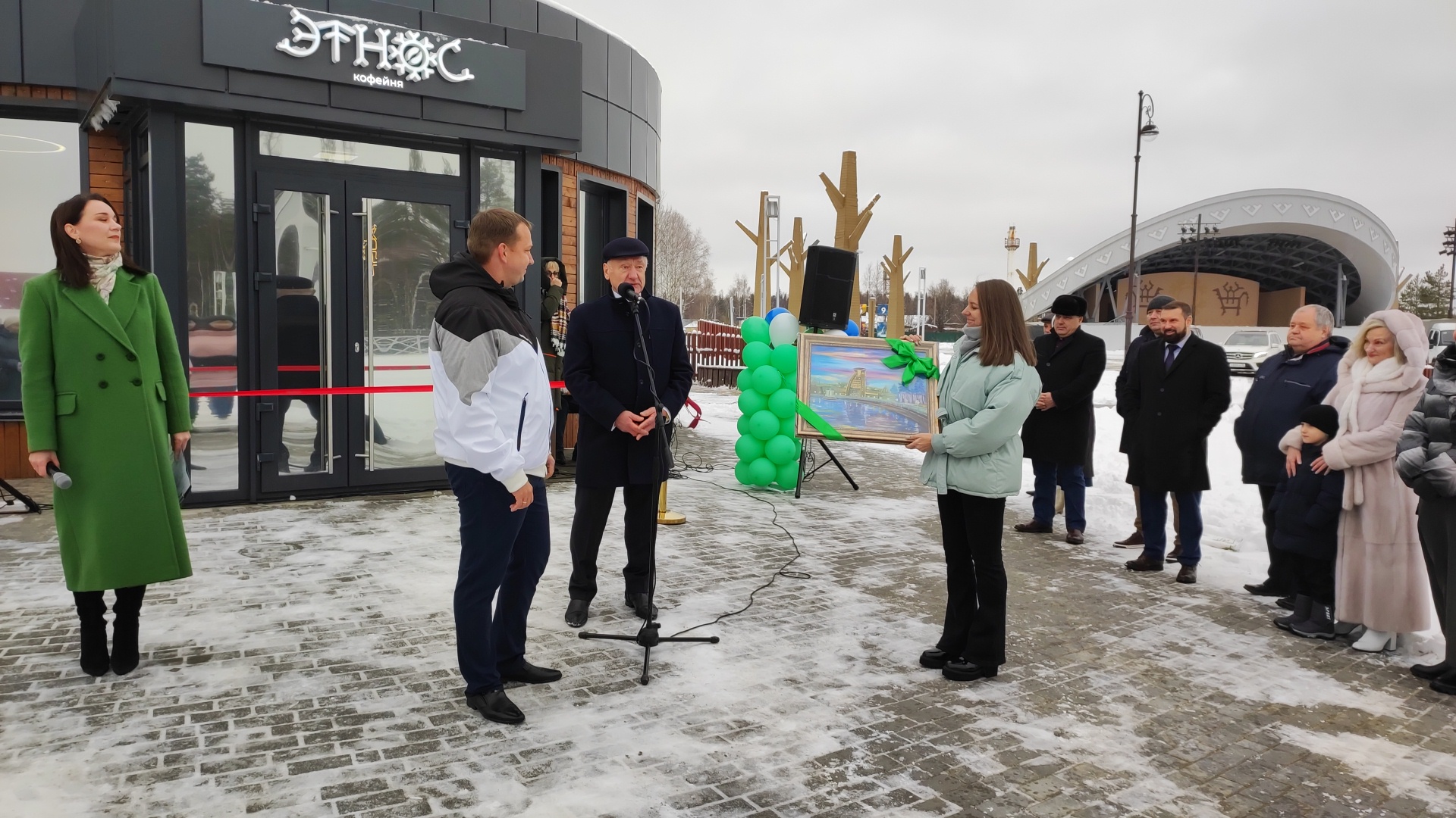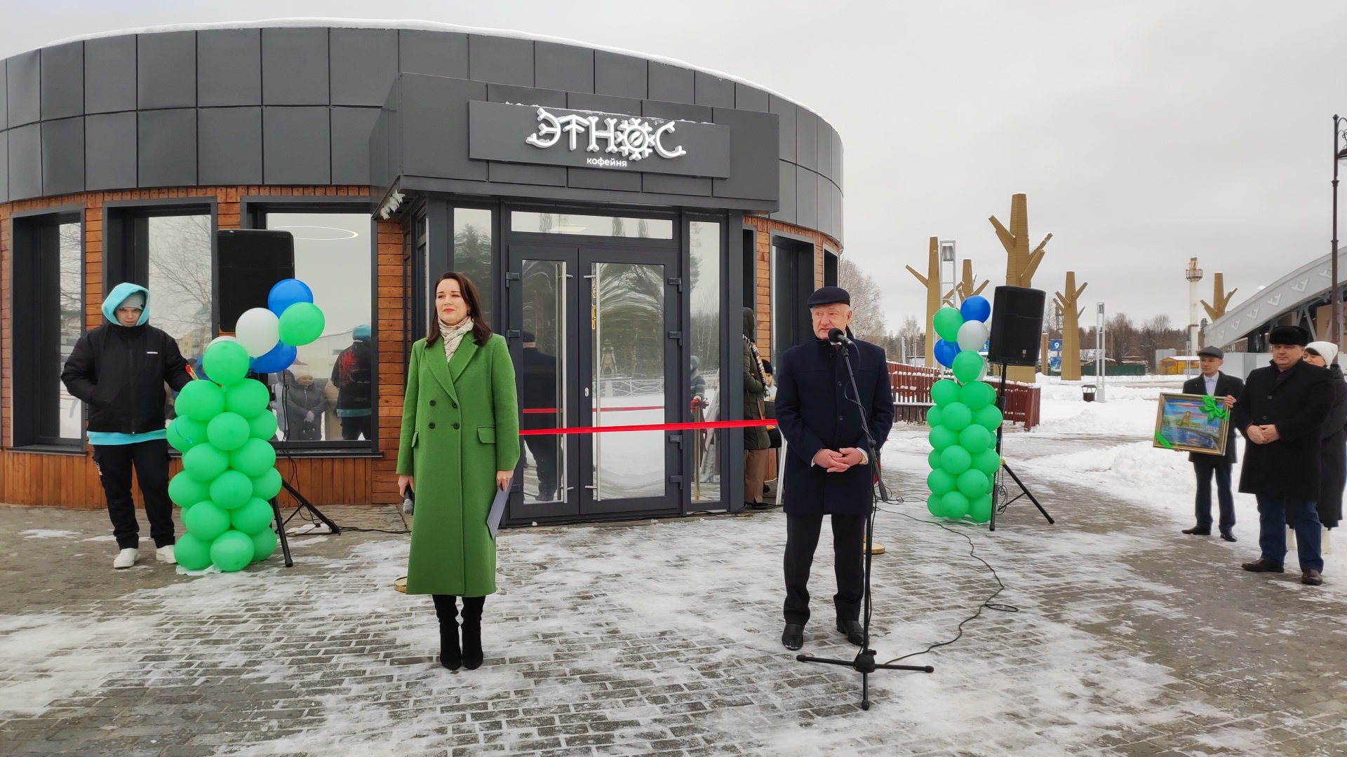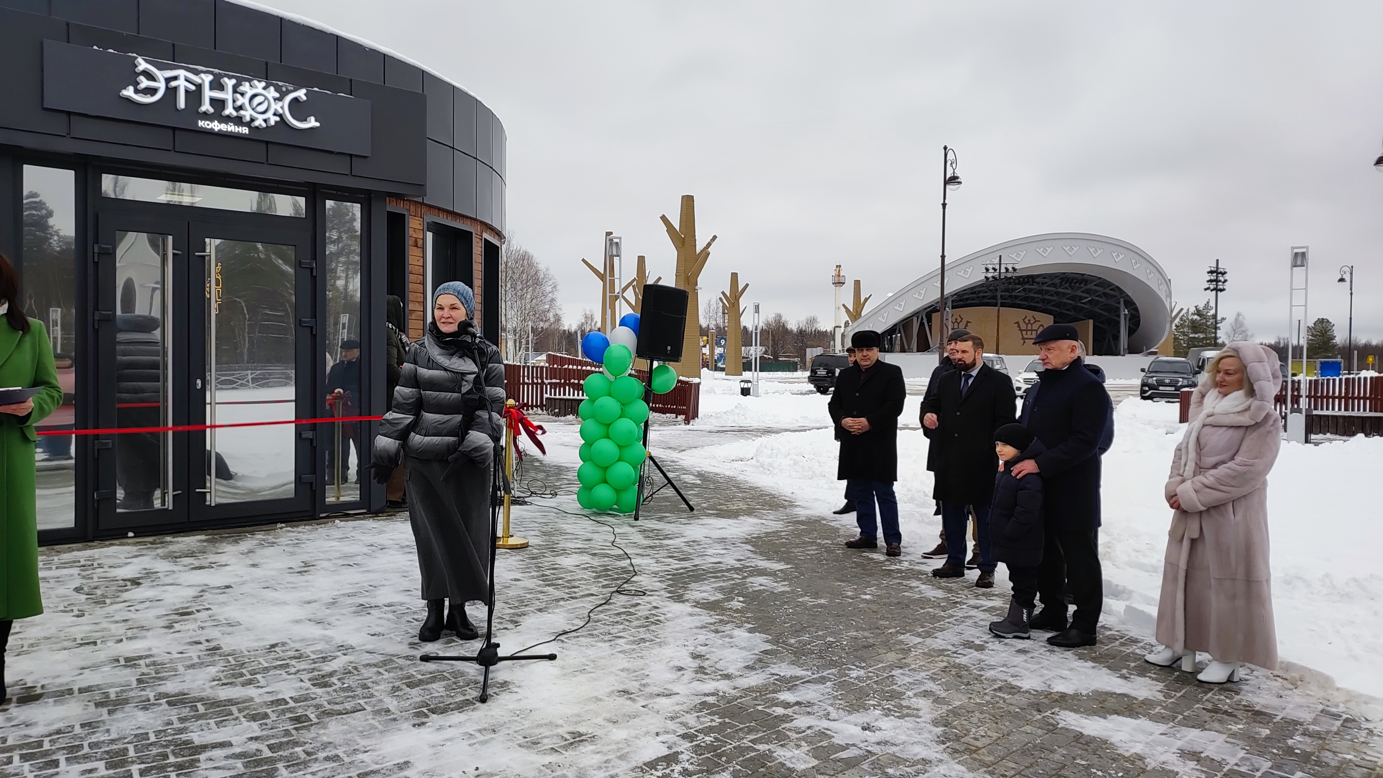 На территорию с рабочим визитом прибыла директор Департамента финансов, заместитель Губернатора Югры Вера Аркадьевна Дюдина. Вместе с Верой Аркадьевной глава Белоярского района Сергей Маненков на набережной «СэйПан» открыли новую кофейню «Этнос».