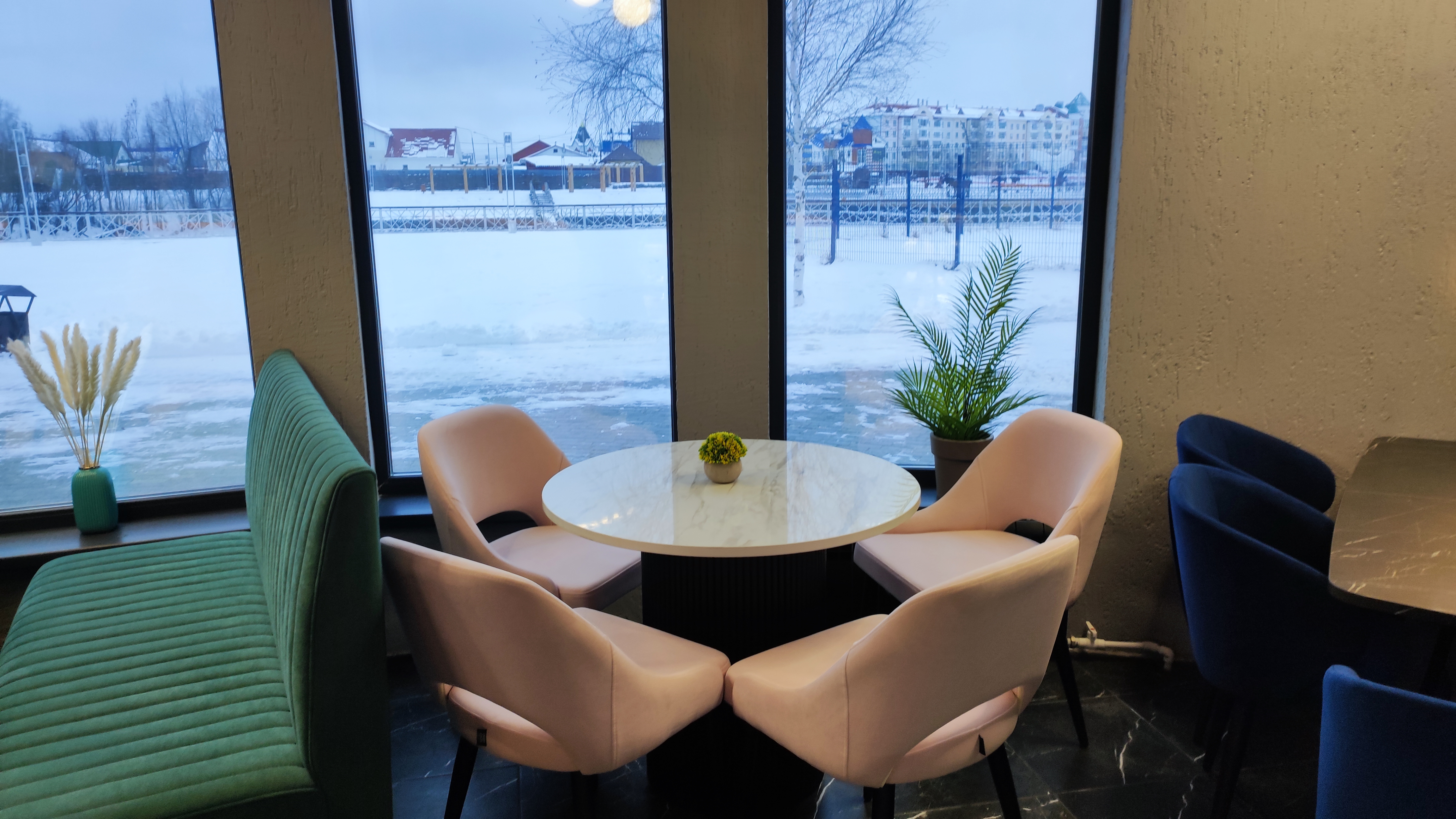 Одновременно в кофейне может находиться 25 гостей. В меню большой выбор кофе, более 10 наименований, чай, кондитерские изделия. В перспективе планируется производство и реализация мороженого.