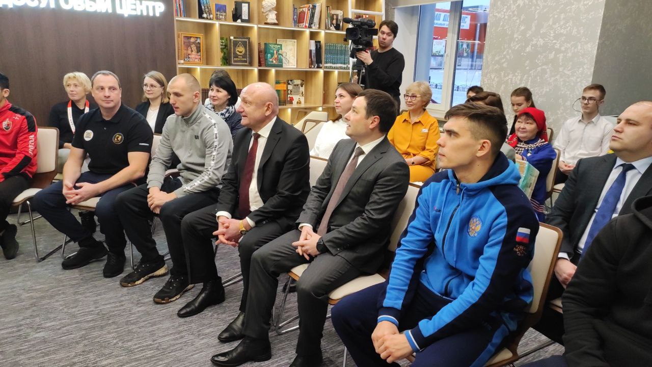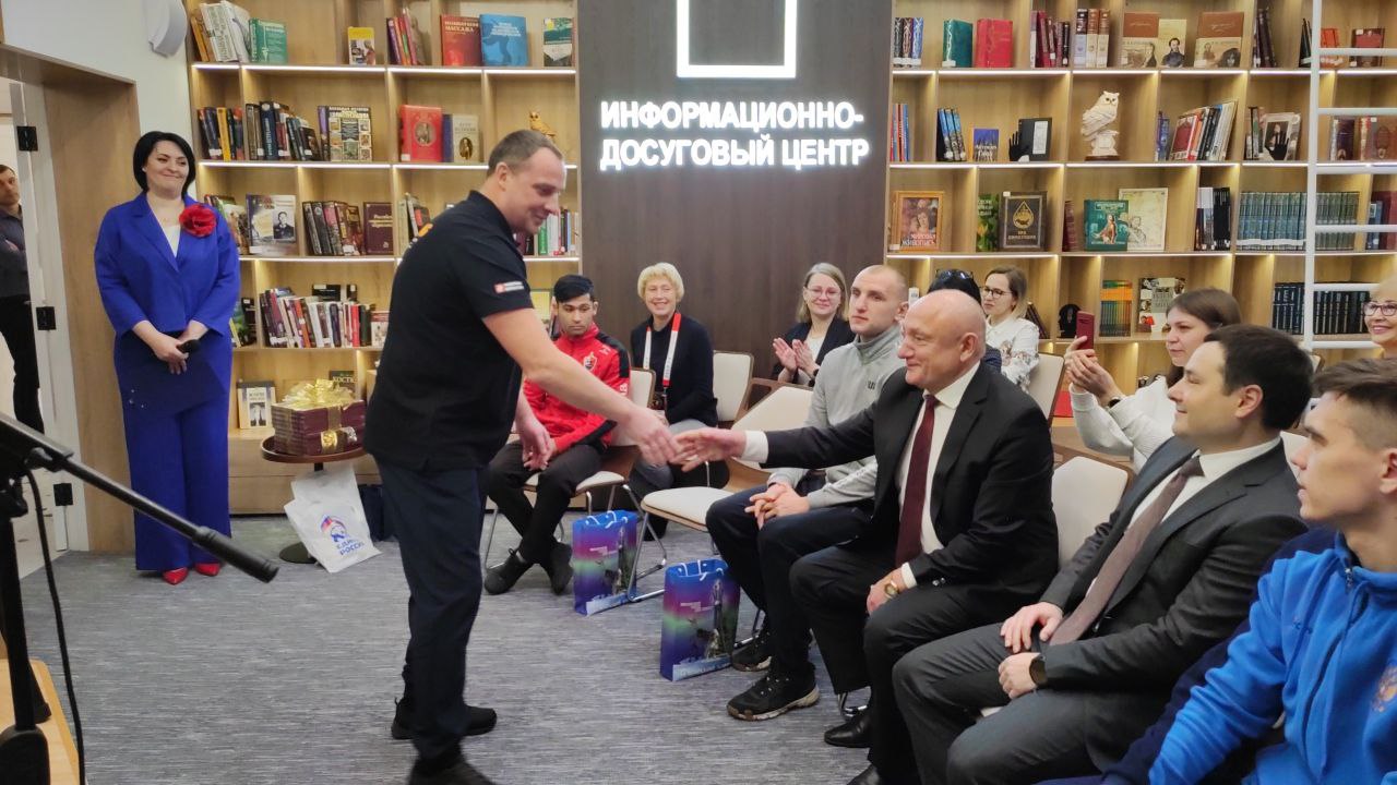Сегодня в Информационно-досуговом центре «Кластер» вместе с первым заместителем Губернатора Югры Алексеем Шипиловым Сергей Маненков провел встречу с 4 боксерами и тренером из ДНР, которые являются членами сборной России по боксу на ХIХ Кубке мира по боксу нефтяных стран памяти героя социалистического труда Фармана Салманова.