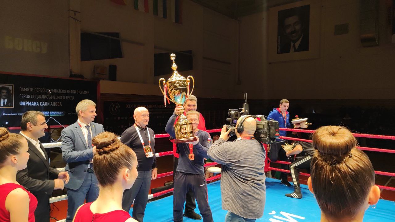 Сегодня во Дворце спорта состоялись финальные поединки ХIХ Кубка мира по боксу нефтяных стран памяти героя социалистического труда Фармана Салманова и церемония награждения победителей.