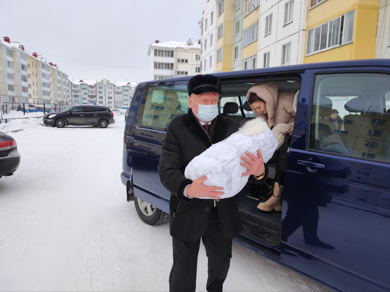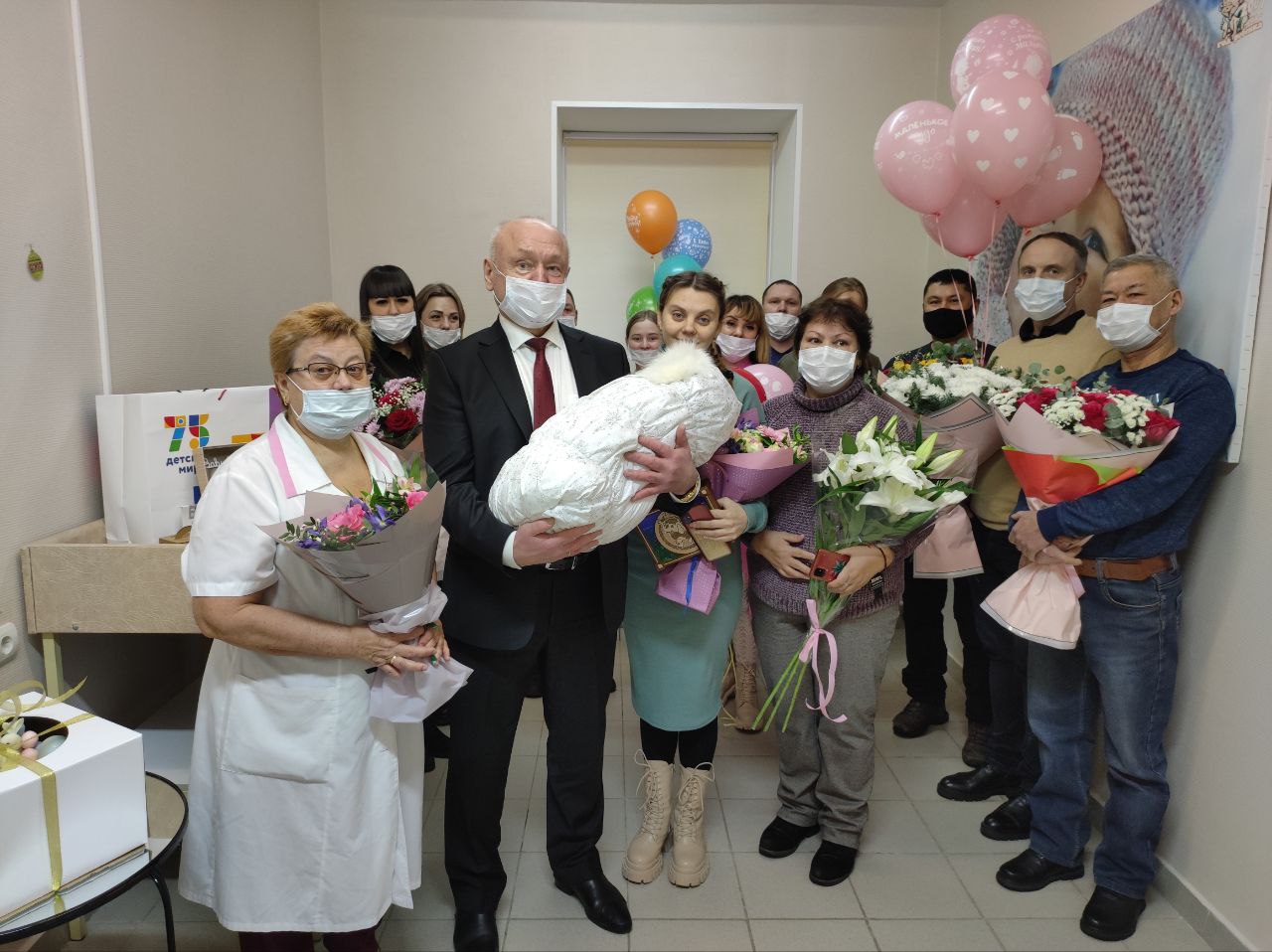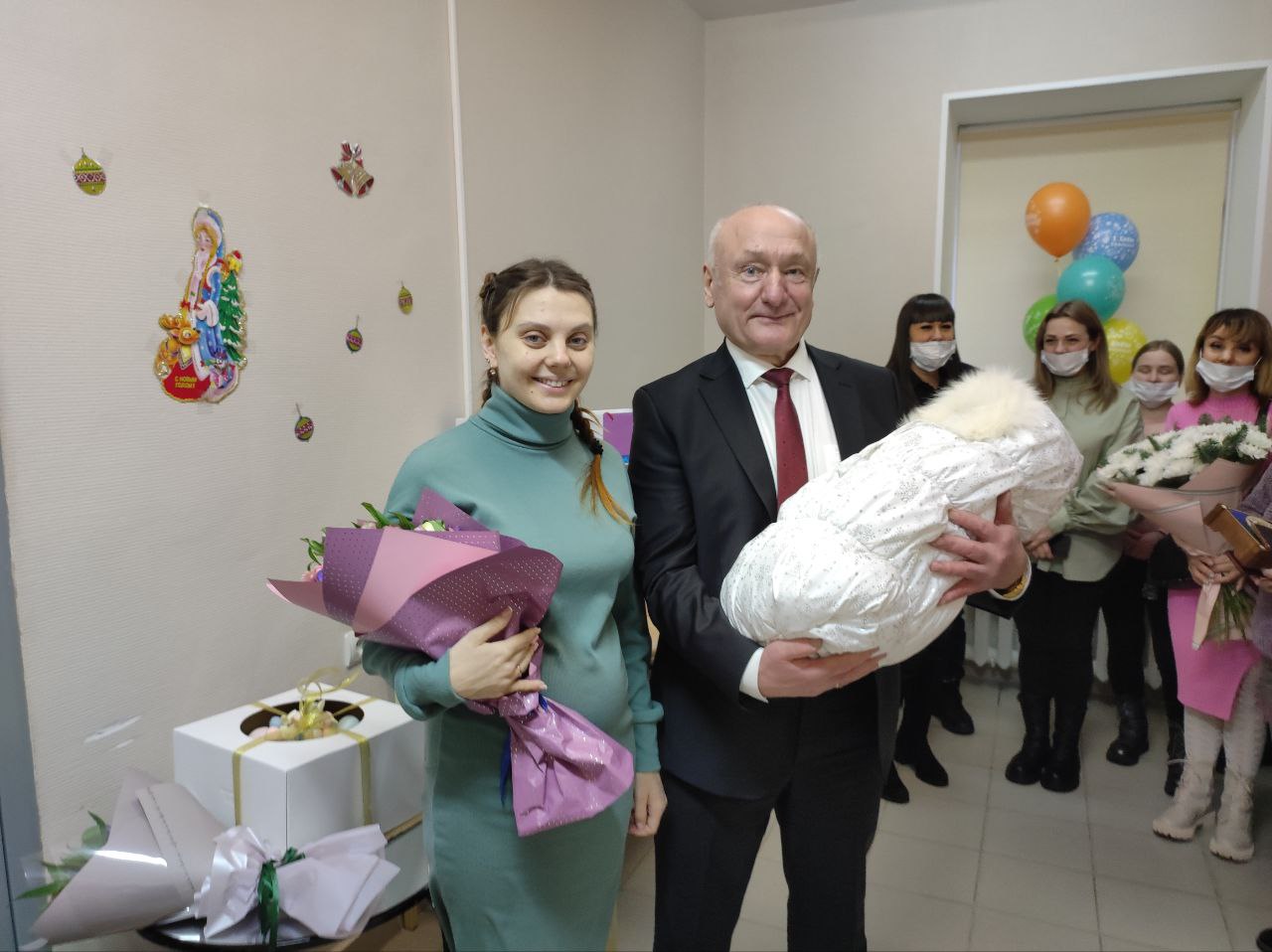 Поздравил роженицу и всю семью с рождением маленького чуда. Подарил необходимые вещи для новорожденной, пожелав, чтобы та росла счастливой, а в семье царили мир и любовь.