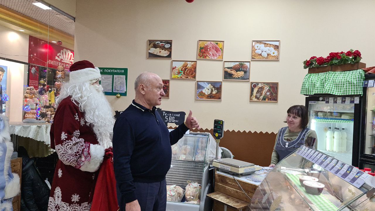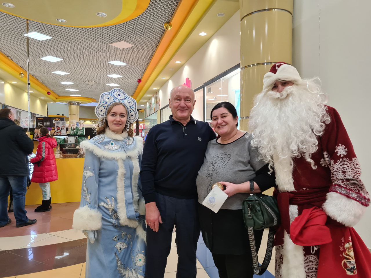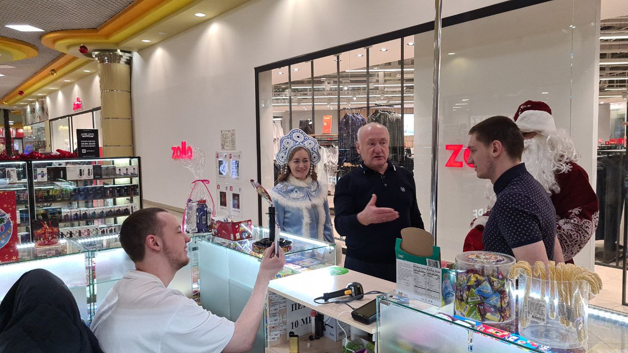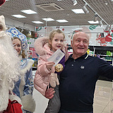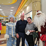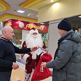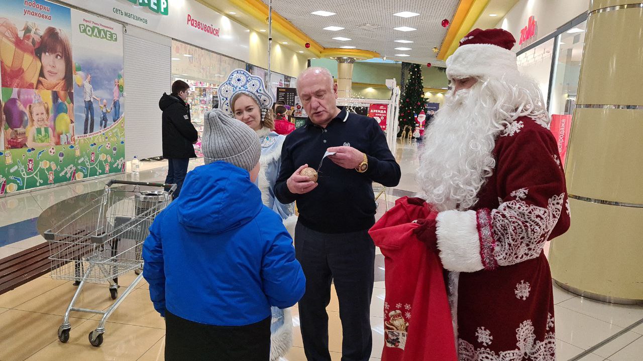 Вместе с Дедом Морозом и Снегурочкой Сергей Маненков поздравил с наступающими праздниками земляков, которых встретил в ТРЦ «Оазис Плаза». и подарил новогодние шары и билеты в кинотеатр «Синема Де Люкс»