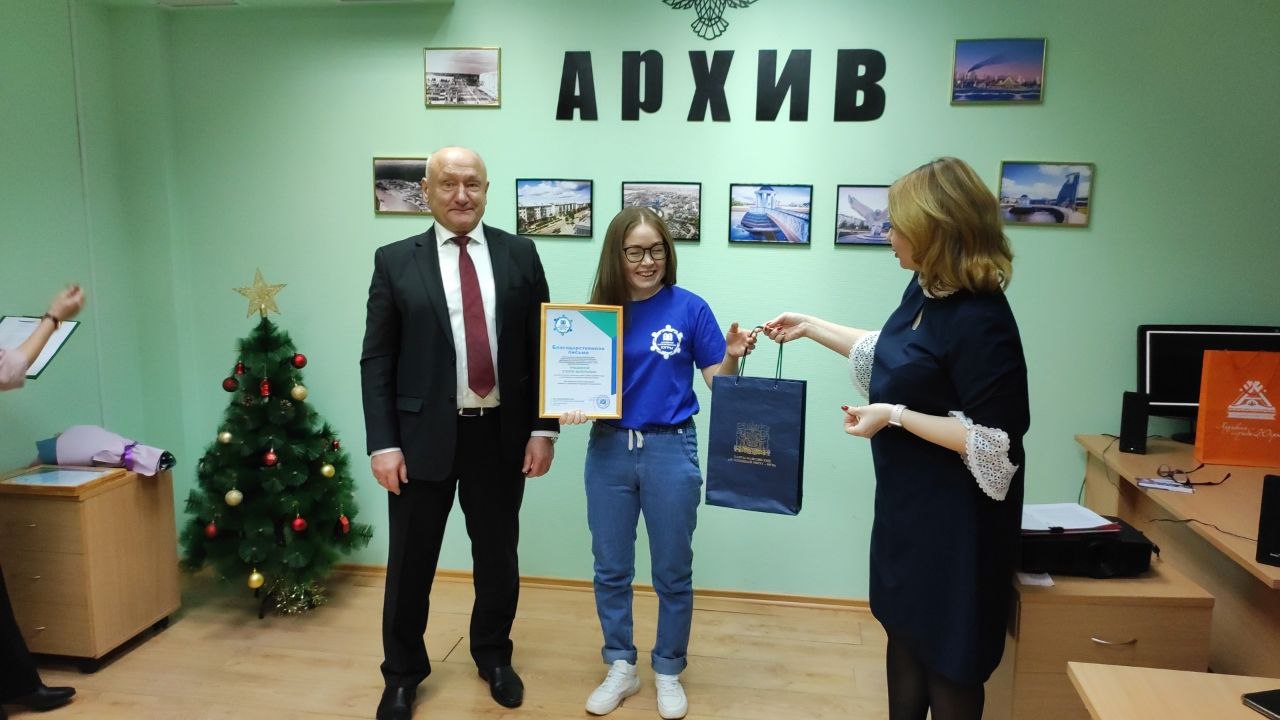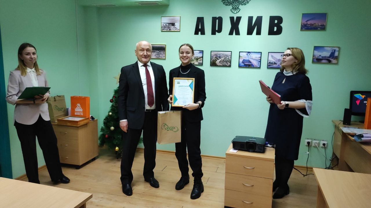 Кулагина Арина, выпускница школы №3 стала победителем регионального этапа IX Всероссийского конкурса юношеских учебно-исследовательских работ учащихся средних учебных заведений «Юный архивист». Поблагодарил ее научного руководителя Мухаметдинову Гульнару Юлаевну – учителя истории и обществознания школы №3» г. Белоярский, вручил благодарность Службы по делам архивов Югры за помощь при подготовке работы победителя.