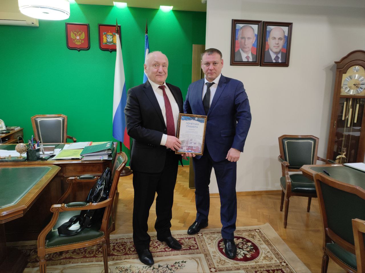 Андрей Александрович вручил Благодарственное письмо муниципальному образованию за эффективную работу органа местного самоуправления с собственниками помещения в многоквартирных домах по вопросам реализации программы капремонта на территории района.