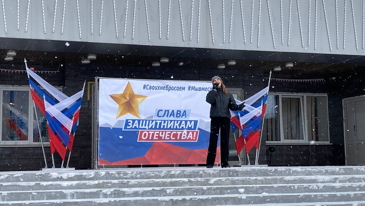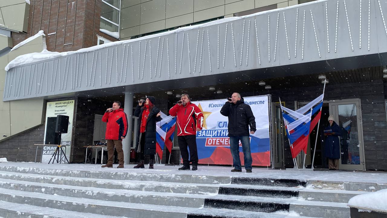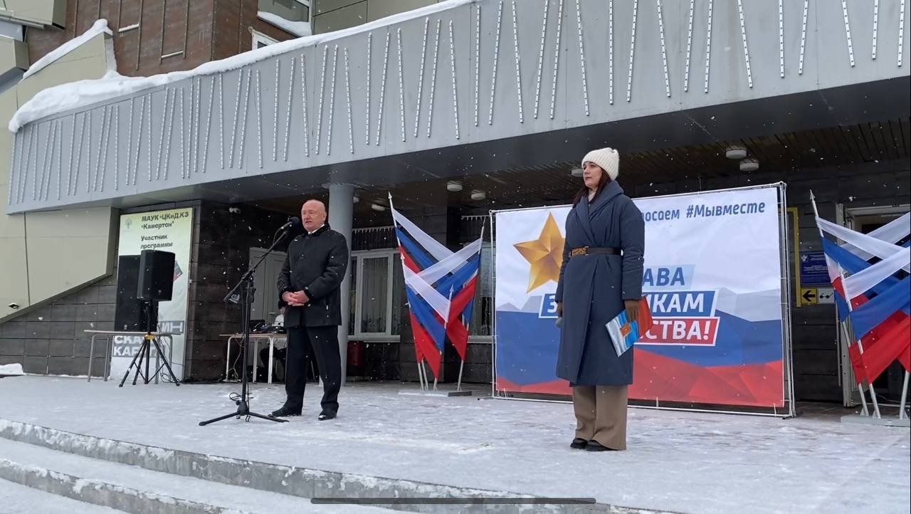 На площади перед Центром культуры и досуга «Камертон» прошел митинг-концерт с участием исполняющего обязанности военного комиссара города Юрия Пасечнюка, представителями общественных организаций, депутатами, молодежью, трудовыми коллективами, волонтерами и активистами. В этом году особые слова поздравления выступающие адресовали участникам СВО.