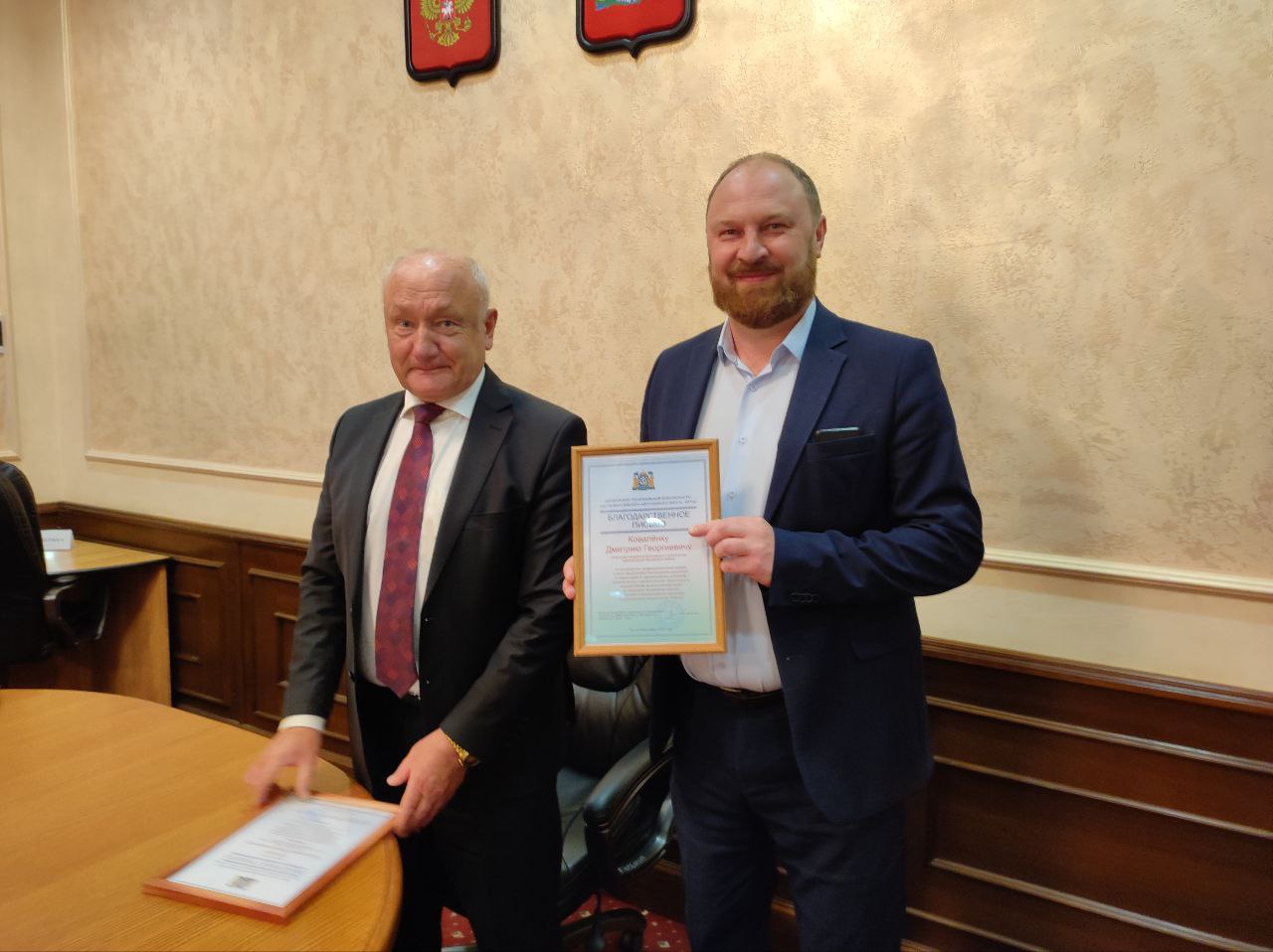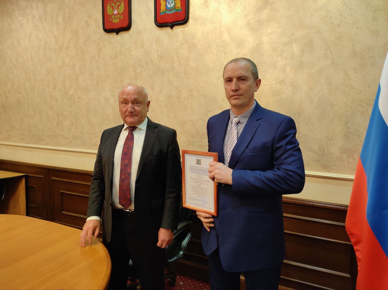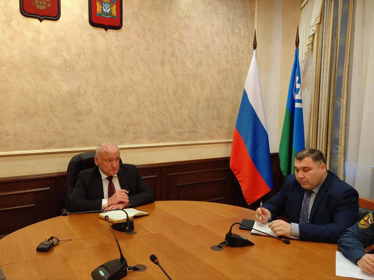 Глава муниципального образования начал заседание с приятной миссии. Вручил две награды Департамента региональной безопасности Югры работникам администрации Белоярского района за достигнутые профессиональные успехи в деле обеспечений безопасности населения и территорий от чрезвычайных ситуаций. Почетную грамоту - ведущему специалисту отдела по делам гражданской обороны и чрезвычайным ситуациям Владимиру Шорину и Благодарственное письмо - начальнику управления капитального строительства Дмитрию Коваленку.