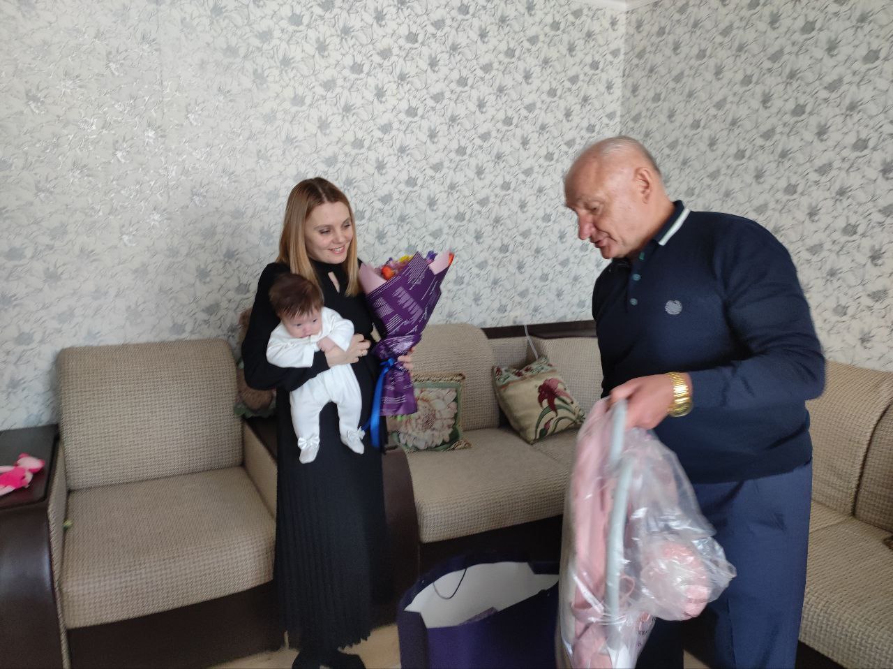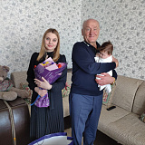 В день посещения в семье Ким состоялся праздник - в храме преподобного Серафима Саровского покрестили младшую недавно родившуюся дочь Валерию. Глава муниципалитета поздравил семью с этим радостным событием.