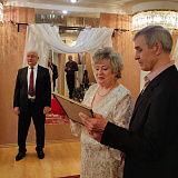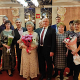 Сергей Маненков поздравил семейную пару с «золотой свадьбой» и вручил памятные подарки. Пожелал здоровья, благополучия, мира, добра и долгих счастливых лет совместной