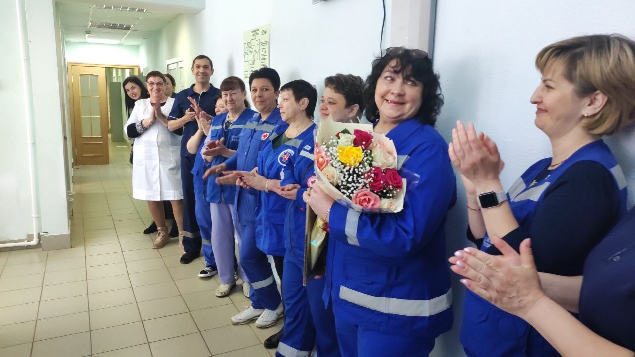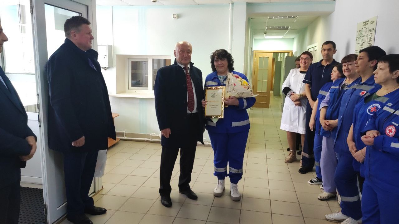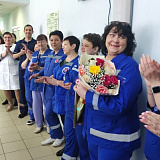 Поздравили с профессиональным праздником работников – врачей, фельдшеров и водителей. В отделении скорой медицинской помощи работает 34 сотрудника. Заведующая отделением СМП – Светлана Валентиновна Нуриахметова работает в больнице с 1987 года, ее стаж работы в больнице – 36 лет, общий медицинский стаж – 43 года.