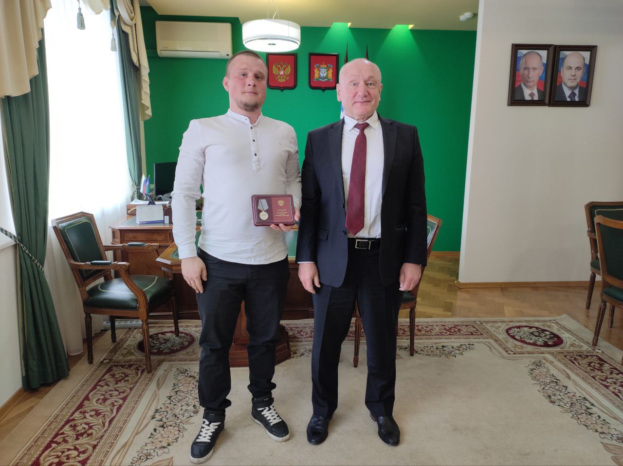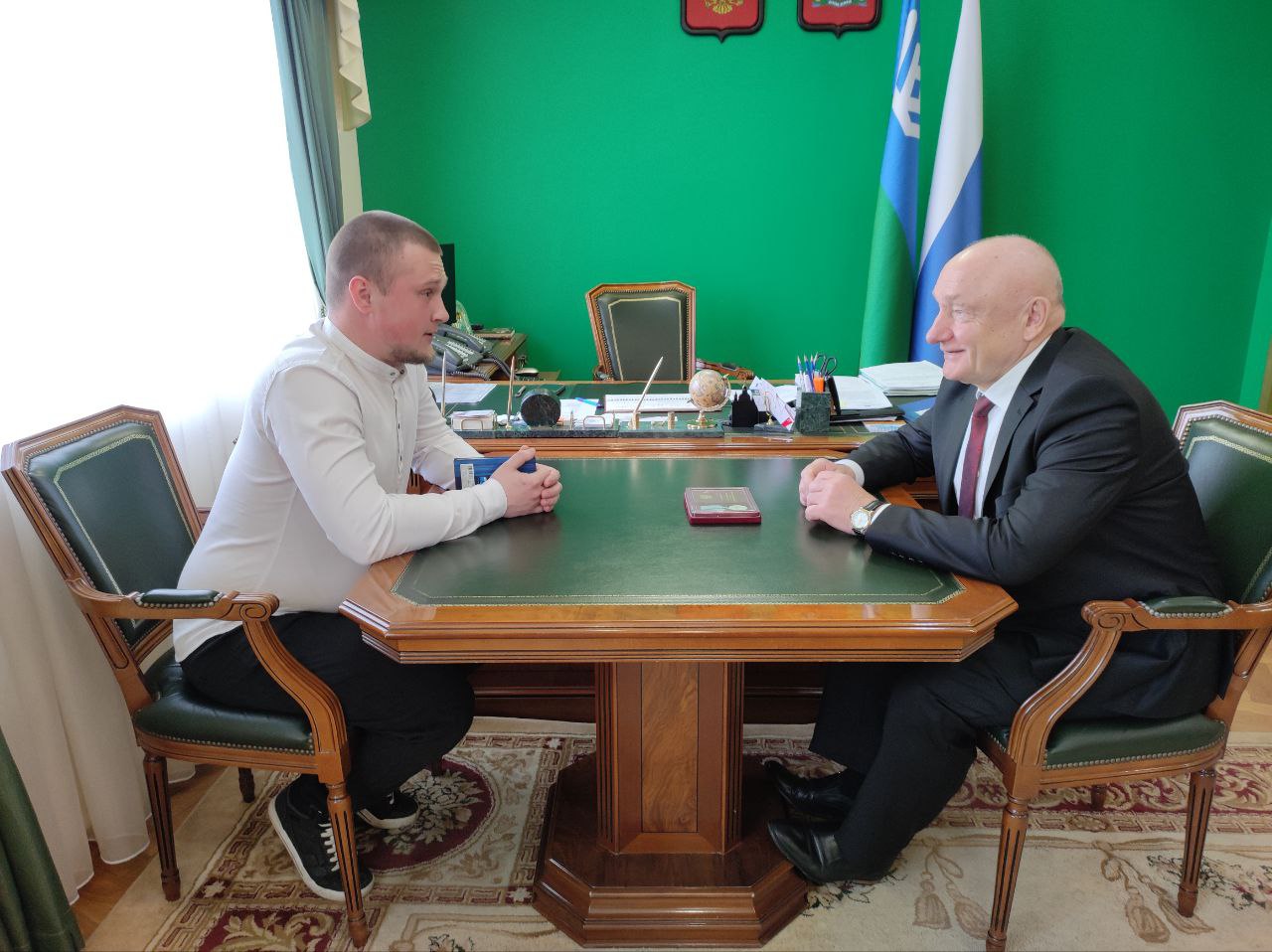 Глава Белоярского района встретился с добровольцем Данилом Поповичем, который с марта прошлого года добровольцем служил в зоне СВО.