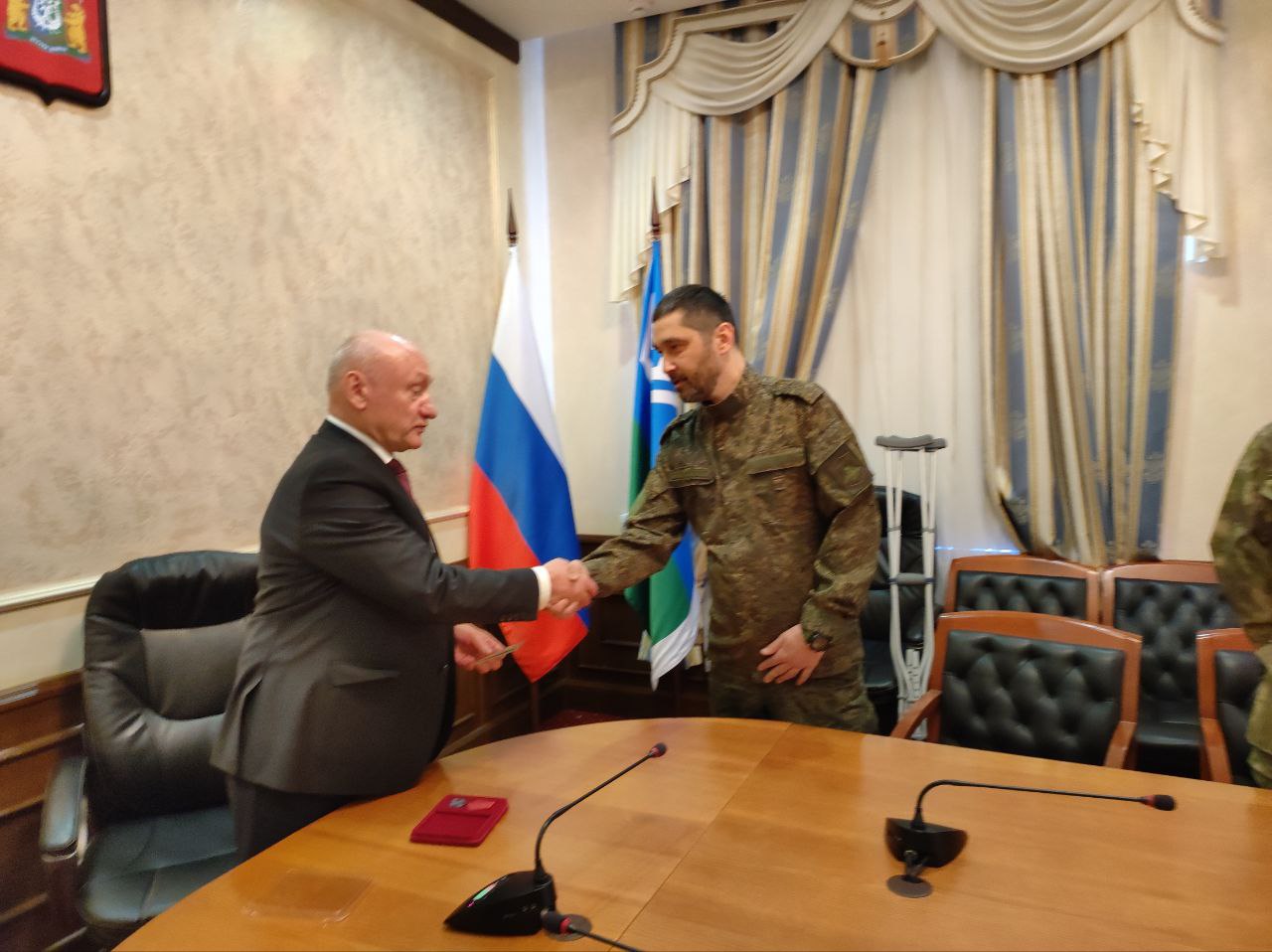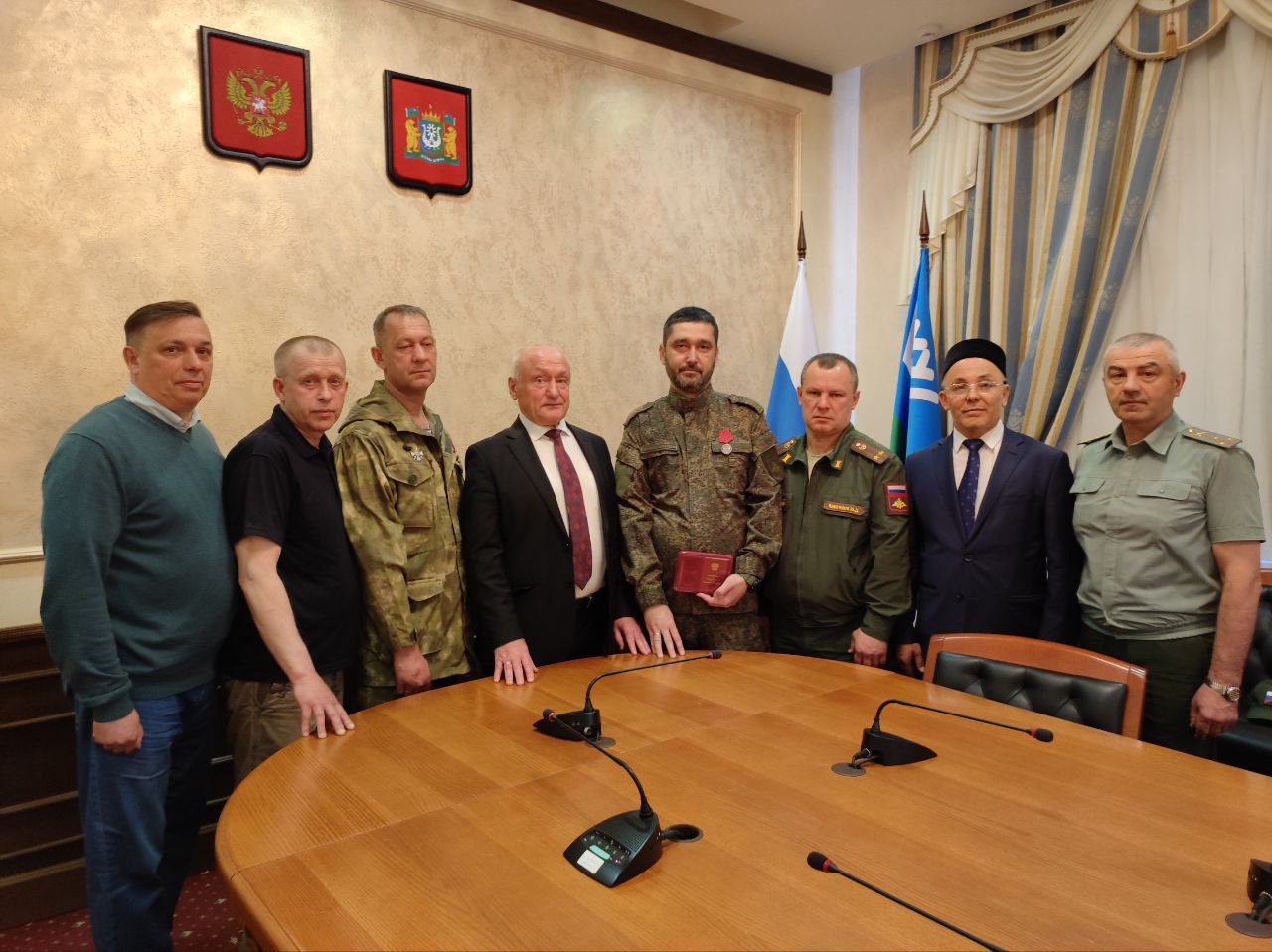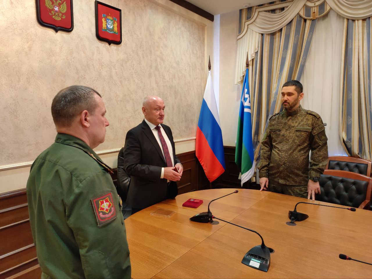 Сегодня в торжественной обстановке вместе с ветеранами боевых действий Сергей Маненков вручил высокую государственную награду Российской Федерации медаль ордена «За заслуги перед Отечеством» II степени участнику СВО Тимуру Сагыналиеву