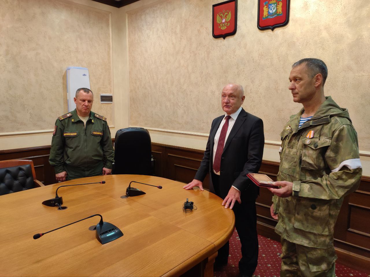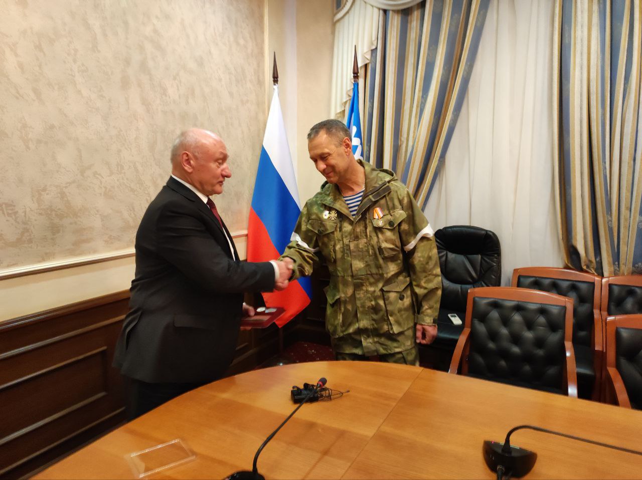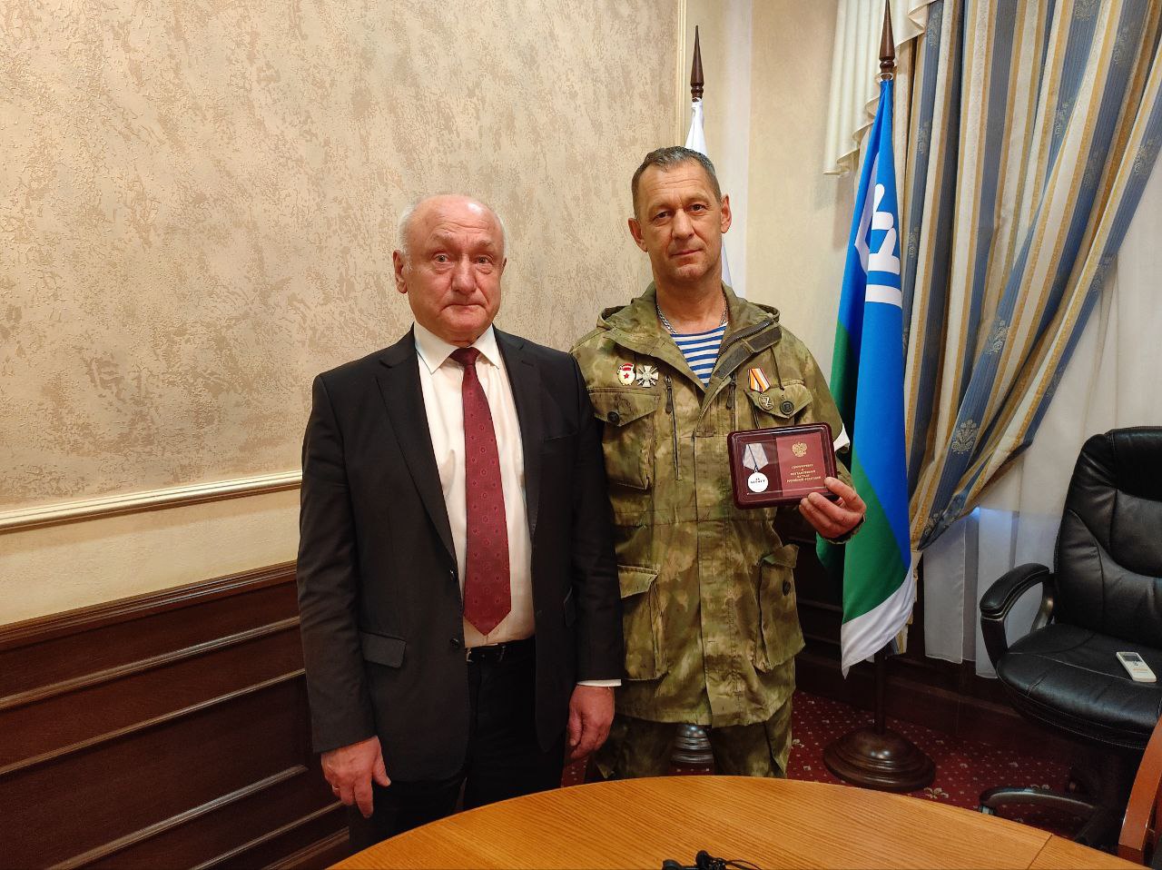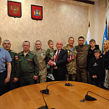 Глава муниципалитета поблагодарил Андрея за верность долгу и героизм. Поздравил с заслуженной наградой. Гордимся подвигом нашего героя-земляка!