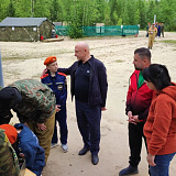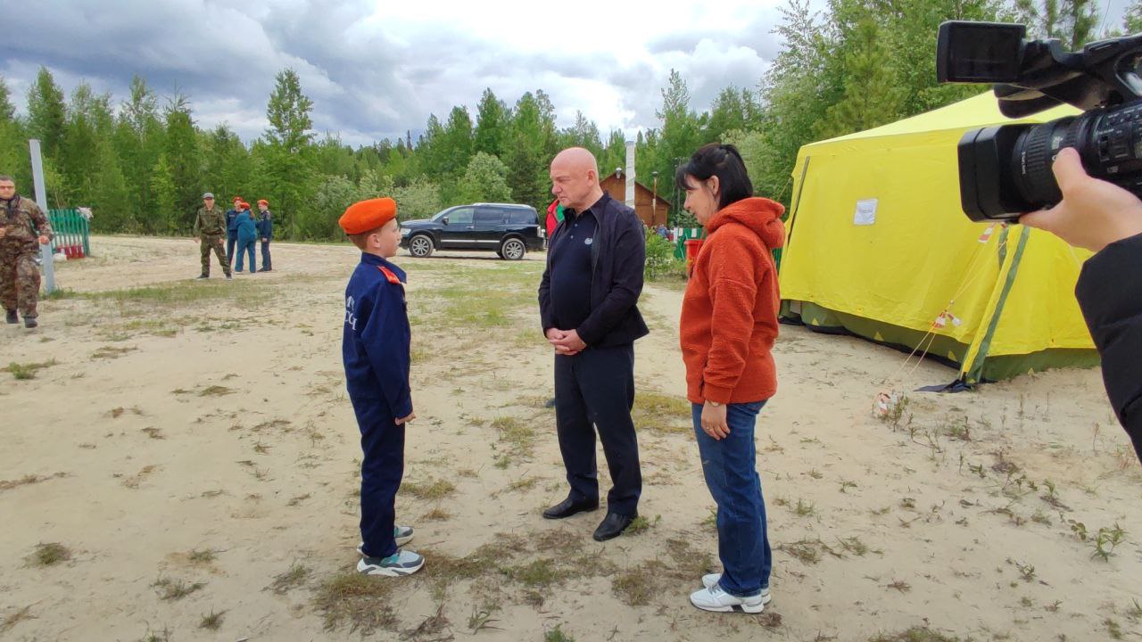 Глава Белоярского района приехал сегодня в палаточный военно-патриотический лагерь с круглосуточным пребыванием детей, посмотрел условия проживания и пообщался с ребятами.