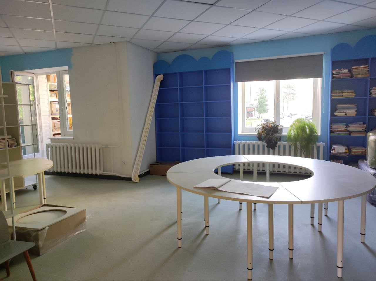 Продолжаются работы по модернизации помещения Детской библиотеки. Завершен ремонт помещений. Ведутся ремонтные работы крыльца здания. Установлена мебель. В конце августа обновлённая Детская библиотека распахнет свои двери для юных читателей.