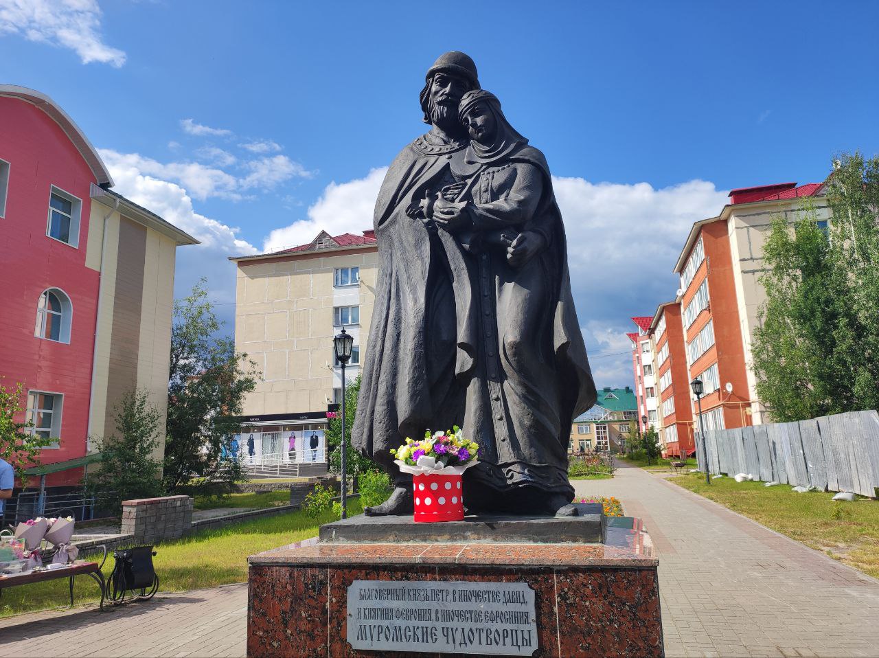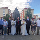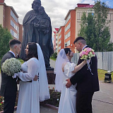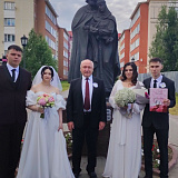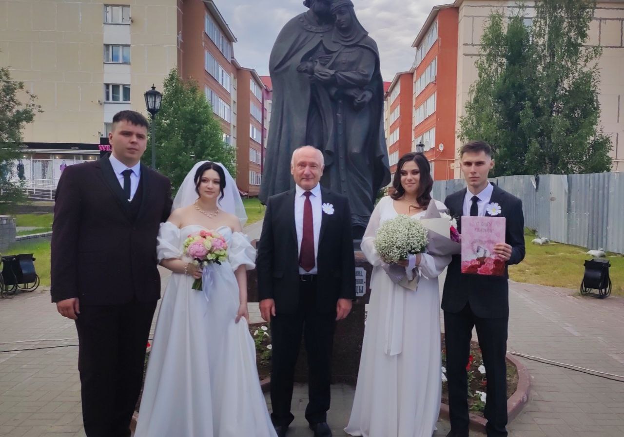Сегодня у памятника святым Петру и Февронии Сергей Маненков вместе ветеранами, представителями общественности, храма преподобного Серафима Саровского, единороссами поздравил молодожёнов и вручил медали «За любовь и верность».