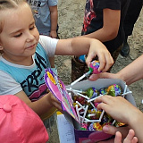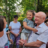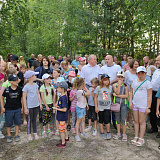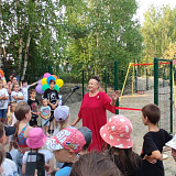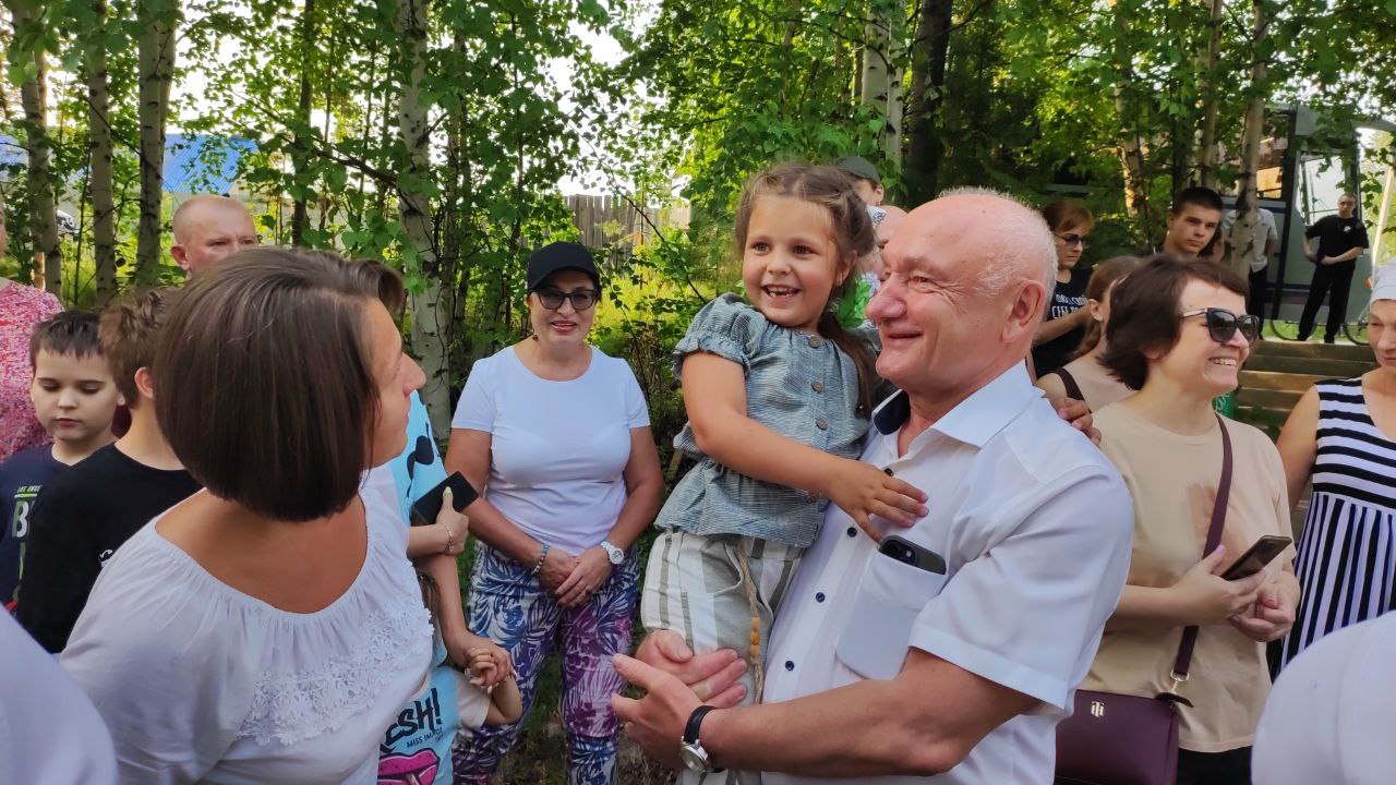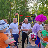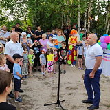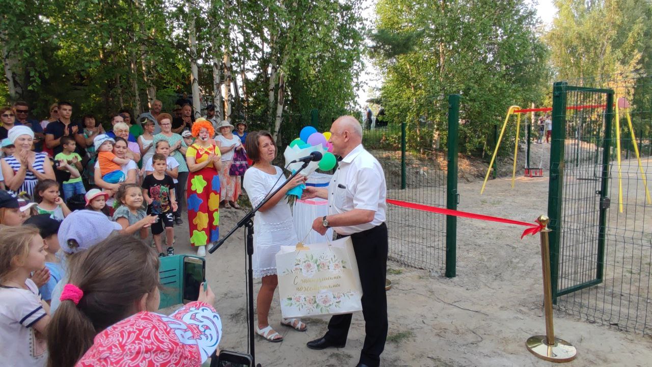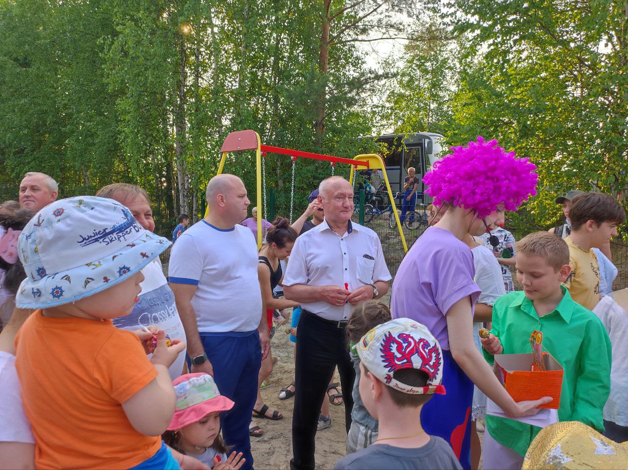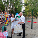 Глава территории вручил подарок представителю инициативной группы по вопросу реализации инициативного проекта «Спортивно-игровая площадка «Кислор» Фатеевой Снежане. Садовому товариществу вручил спортивный инвентарь для игры. Всем детям, участвующим в мероприятии, аниматоры раздали чупа чупсы.
