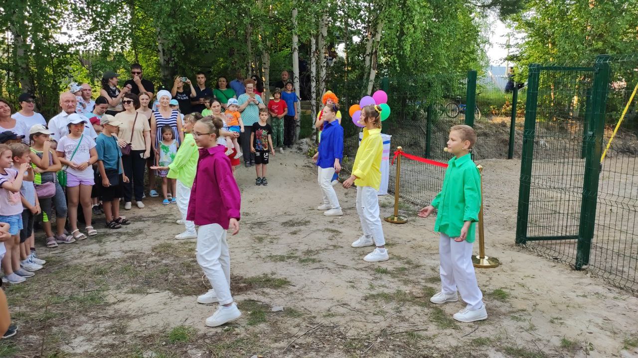 Есть все необходимое для игровой деятельности и общения детей и подростков: качели, песочница, детская горка, спортивные турники, волейбольная площадка, а также зона отдыха.