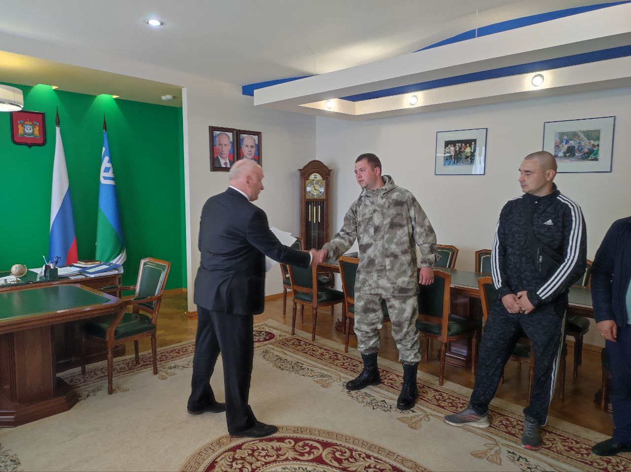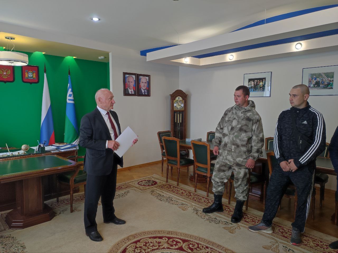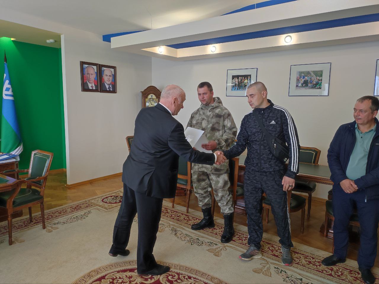 Глава территории вручил бойцам «Боевую путевку» Воина Югры и выразил благодарность за ответственное решение. Крепким рукопожатием скрепили договоренность поддерживать телефонную связь.