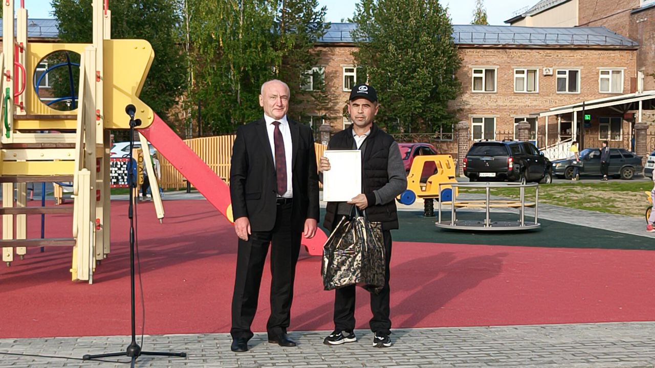 Глава муниципалитета вручил ряд наград. За многолетний добросовестный труд наградил дворника общества «Жилищная Компания ОК» Женишали Мамасалиевича Омурзакова.