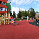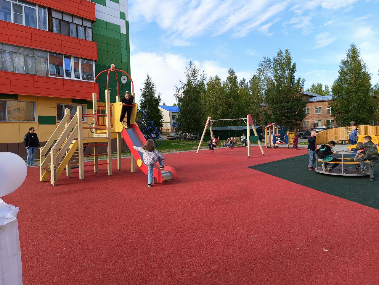 Выполнен ряд работ по переустройству детской игровой площадки: уложено ударопоглащающее покрытие, установлены дополнительные игровые элементы, освещение. Переустроены тротуары. Обустроена зона отдыха для взрослых с установкой лавочек. Произведено частичное озеленение территории.