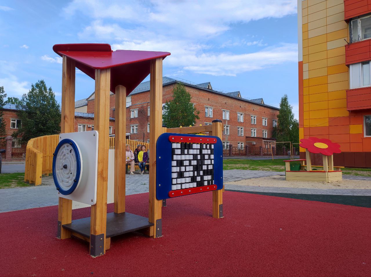 Здесь выполнены работы по переустройству детской игровой площадки: уложено ударопоглащающее покрытие, установлены дополнительные игровые элементы и освещение. Обустроена зона отдыха и новая площадка ТКО.