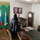 Сергей Маненков подарил на память о Белоярском пано с изображением деревянной церкви, действующей в 1990-е годы. Пожелал реализации всех добрых дел, душевных и телесных сил, здоровья и бодрости духа.