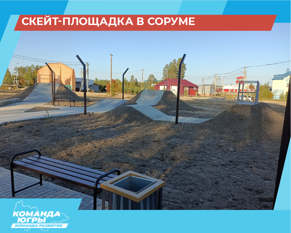 Так, по инициативе Команды Югры и неравнодушных жителей, в Соруме появилась скейт-площадка.