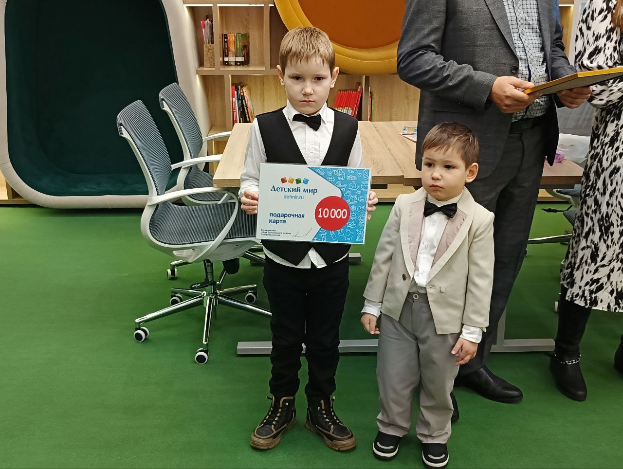 Глава территории поблагодарил родителей за воспитание сыновей в духе ответственности, целеустремленности и патриотизма. Вручил подарочную карту в магазин «Детский мир» на 10 тыс. руб. и продуктовую корзину. Поздравил родителей с праздником. Пожелал им здоровья, счастья и благополучия, чтобы сыновья всегда радовали их и приносили только положительные эмоции. Сыновьям пожелал быть гордостью и опорой для своей семьи, примером для родных и близких.
