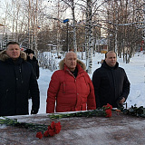 Сергей Маненков вместе с депутатами Думы района, городского Совета, единороссами, представителями общественности, волонтёрами возложили цветы к Вечному огню.