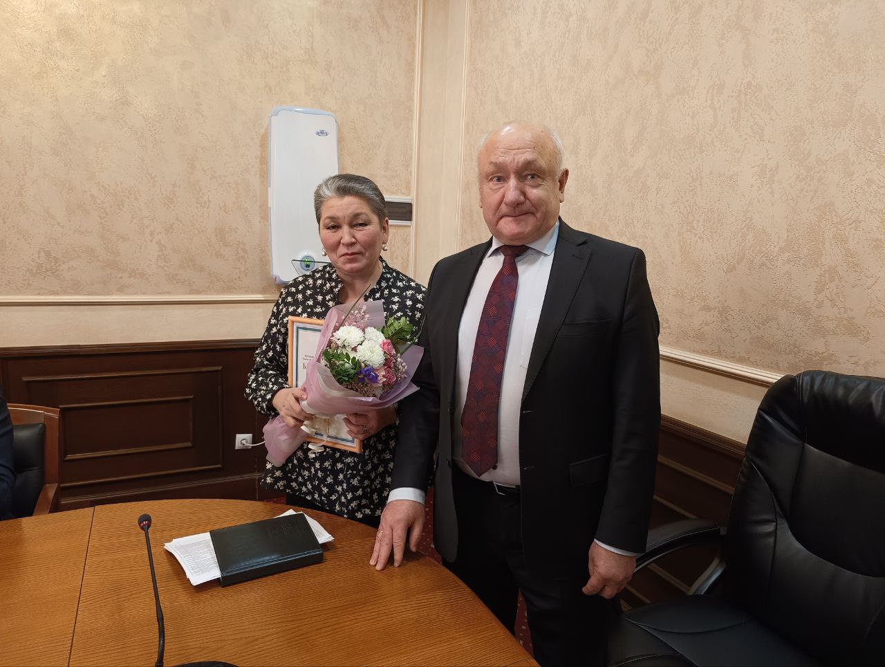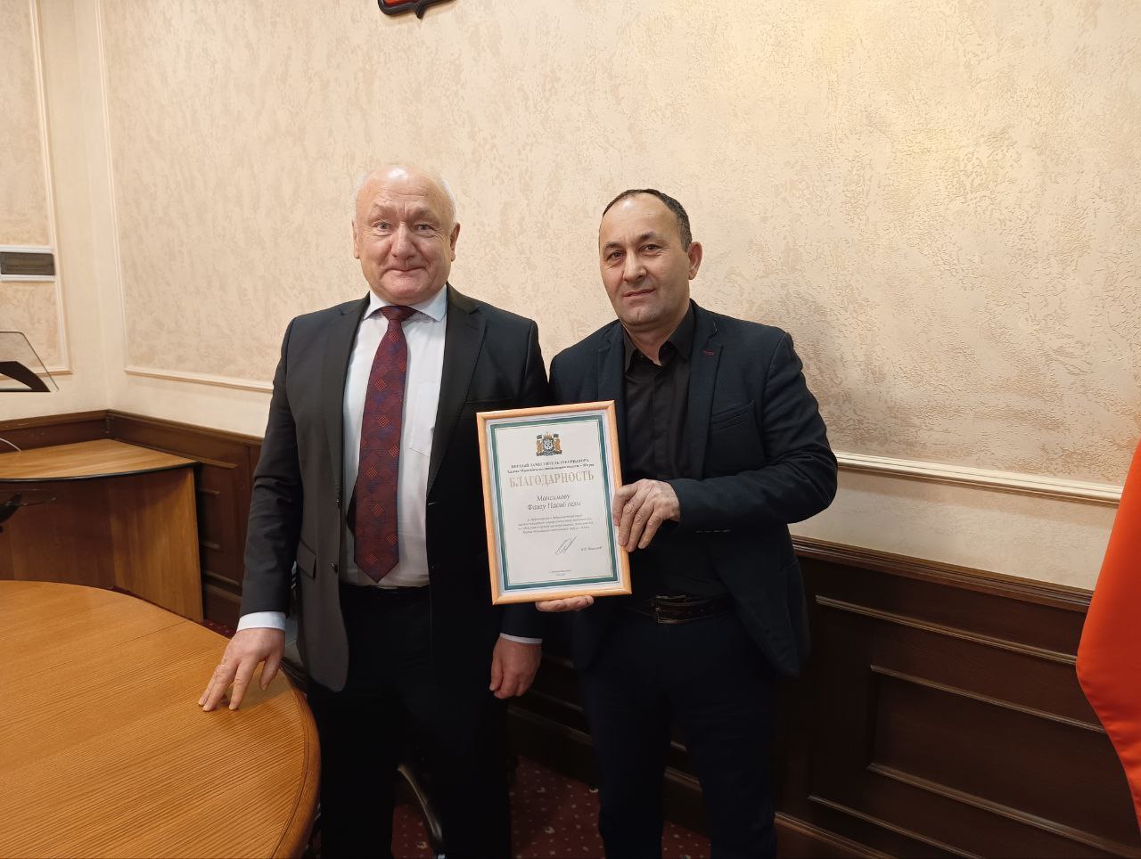 Сергей Маненков вручил Благодарности первого заместителя Губернатора автономного округа Алексея Викторовича Шипилова главе с.п. Казым Алсу Хасимовне Назыровой и ИП Фаигу Насиб оглы Мансимову за эффективный труд и высокие показатели в профессиональной деятельности.