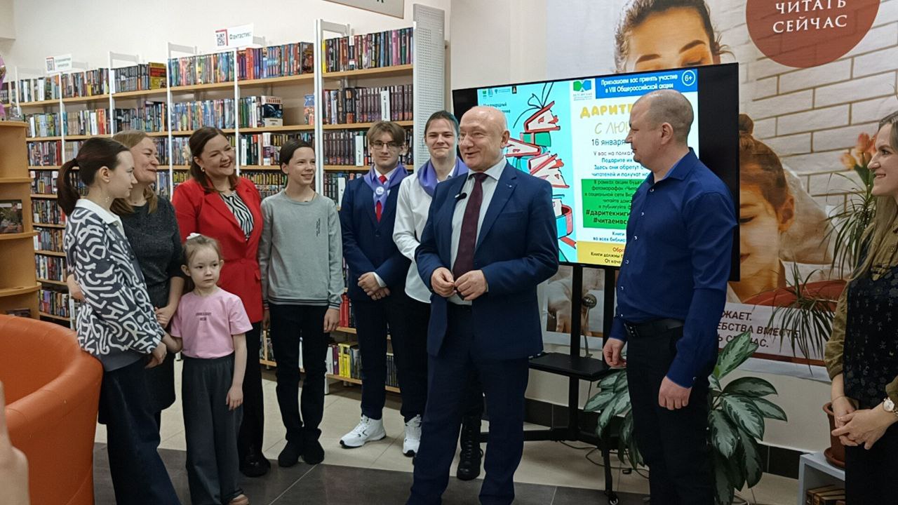 Сегодня, в Международный день дарения книг, глава района посетил Центральную библиотеку и принял участие в общероссийской акции «Дарите книги с любовью».