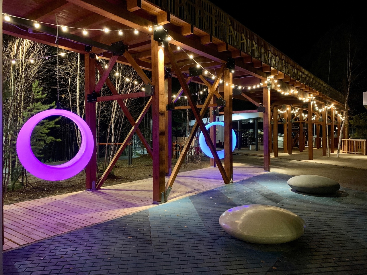 Были проведены работы по устройству искусственных подъемов и спусков, дополнительного круга лыже-роллерной трассы. Созданы крытые места для отдыха, зона детского досуга, пункт проката спортивного инвентаря, прогулочная терраса. Также в рамках благоустройства была продлена существующая «Беличья тропа» и обустроена береговая зона с возможностью рыбной ловли. Парк открыли осенью 2023 года.