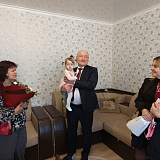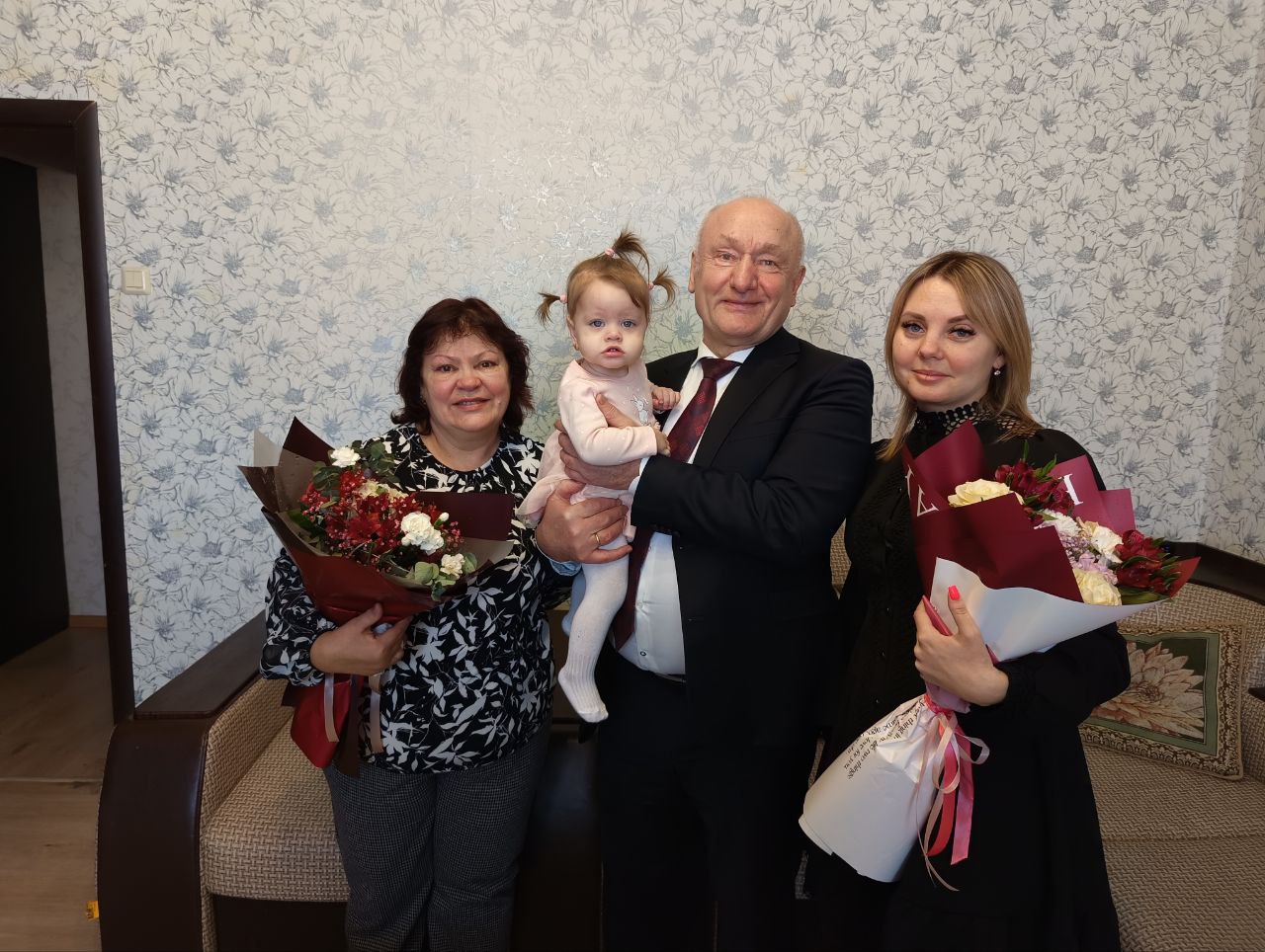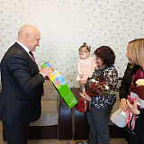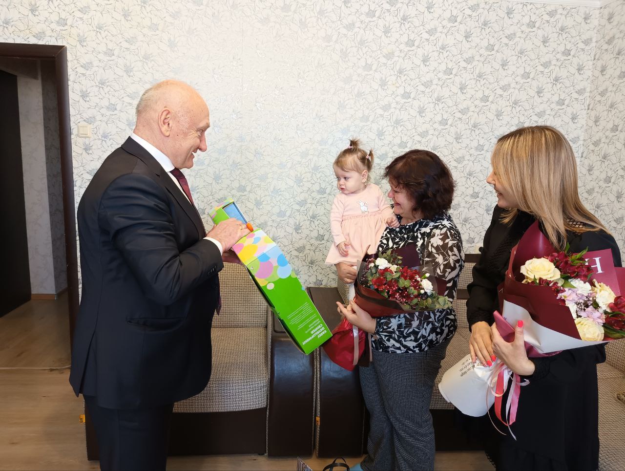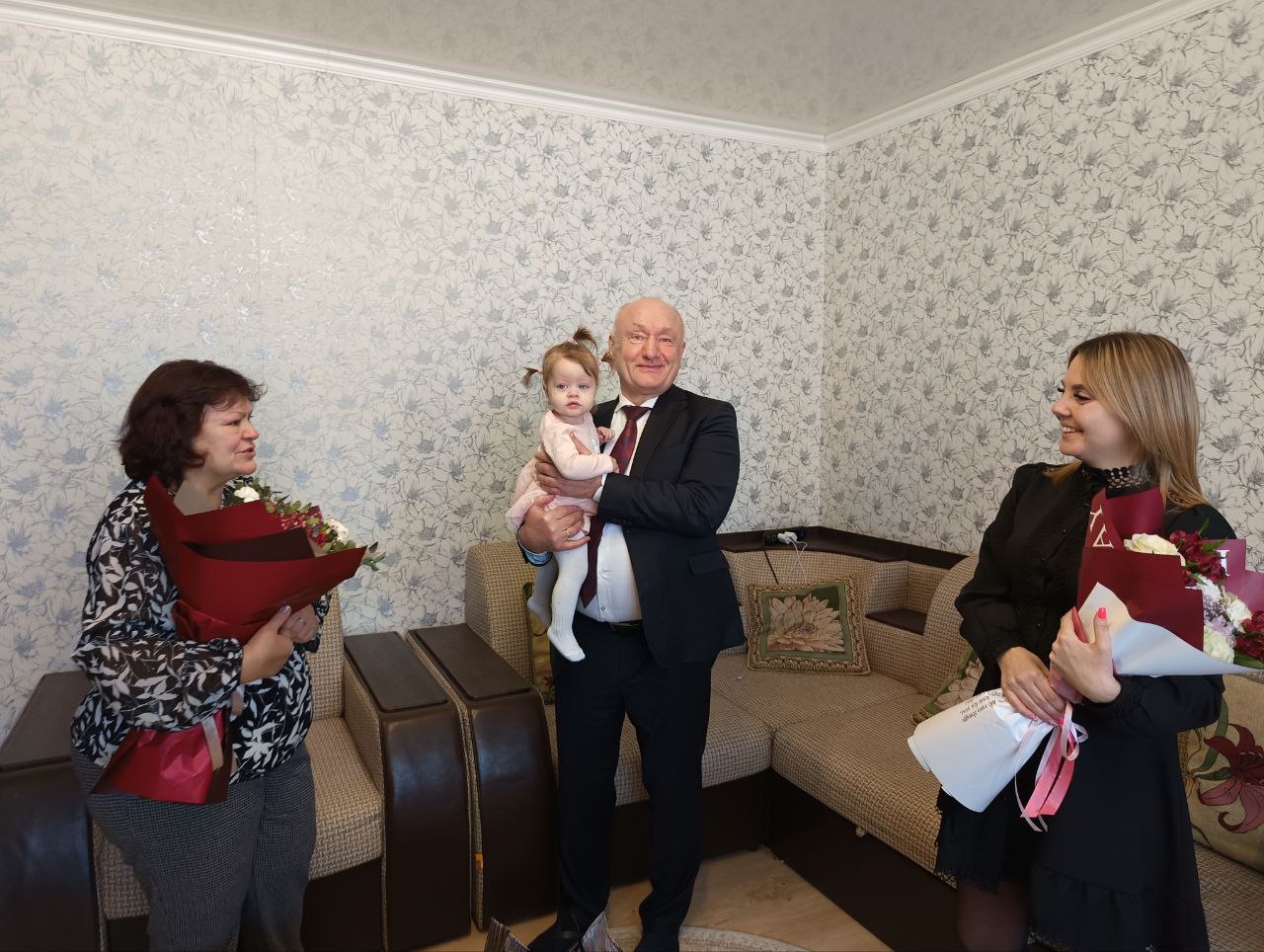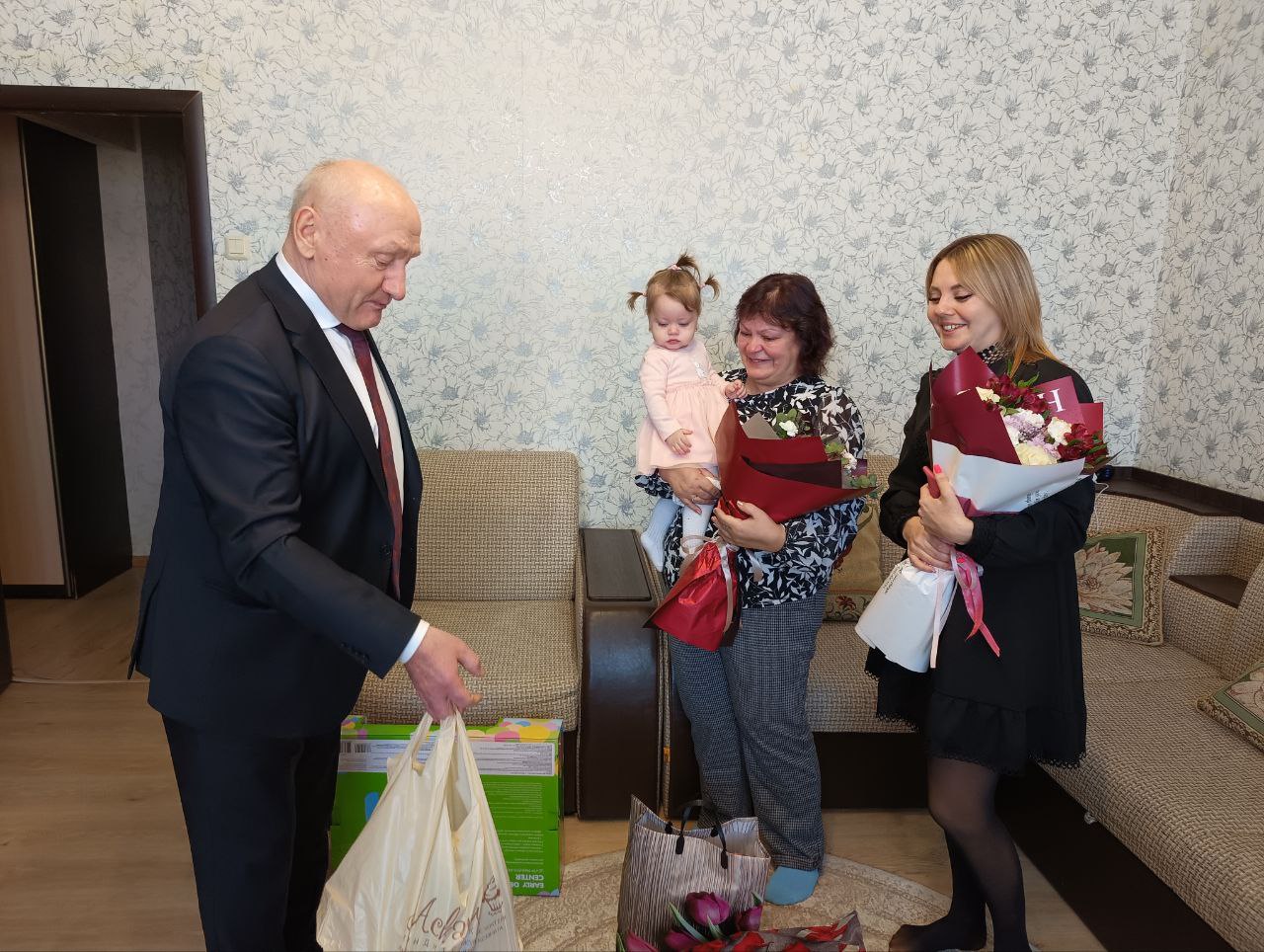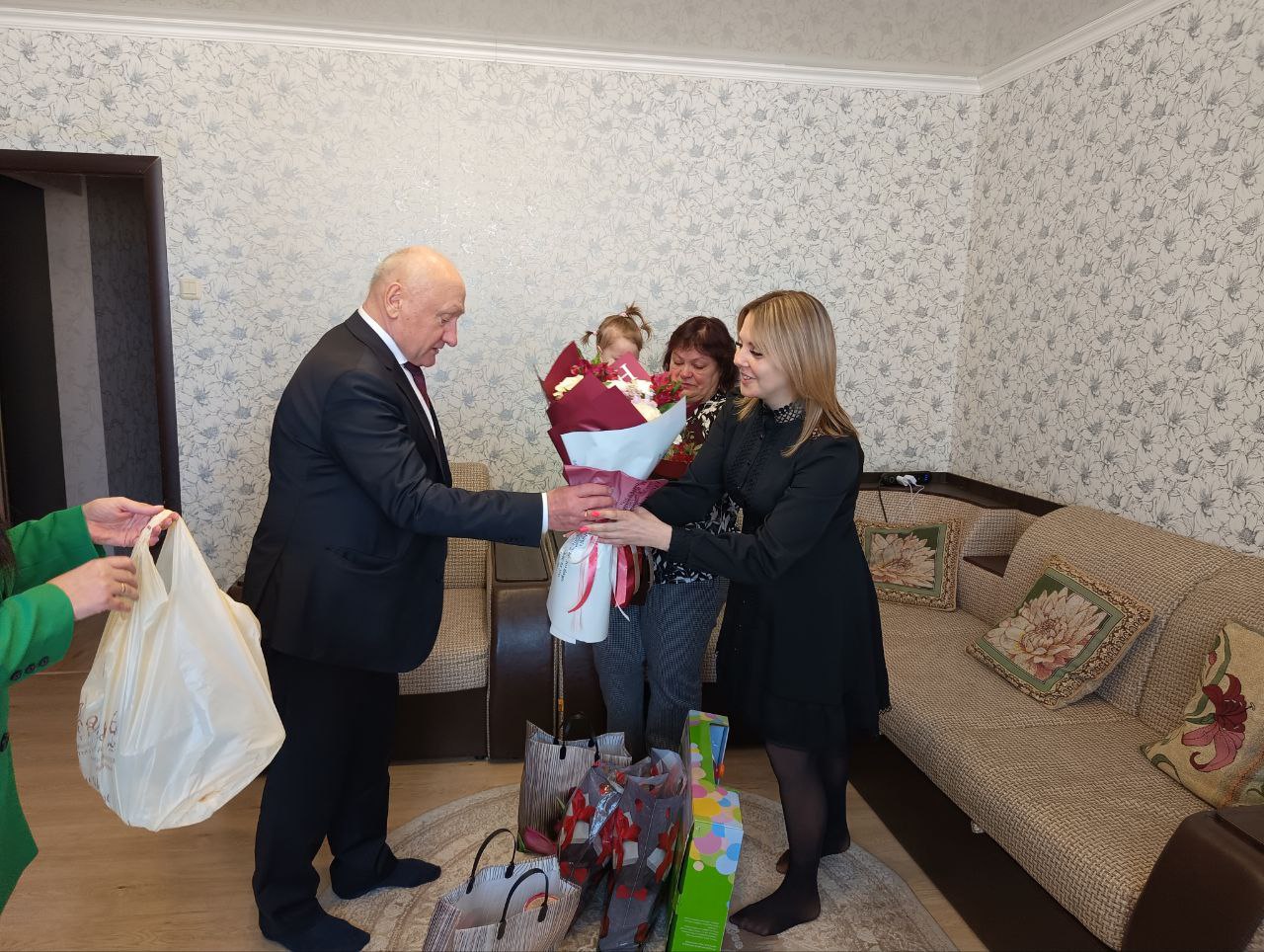 Выразил слова поддержки, пожелания здоровья, бодрости духа, а также весеннего настроения в душе и доме, улыбок и цветов. Алина мама троих замечательных детей, ей есть чему радоваться и кому дарить свою любовь. Вручил всем женщинам и трём деткам подарки.