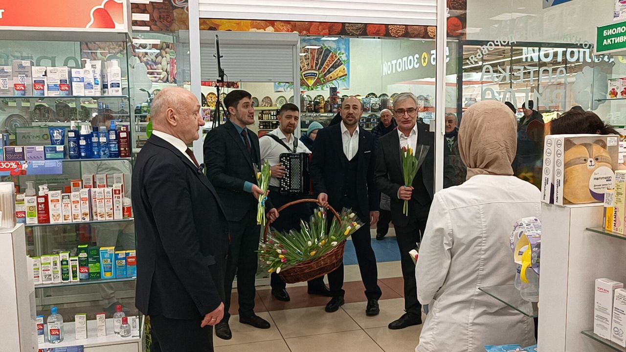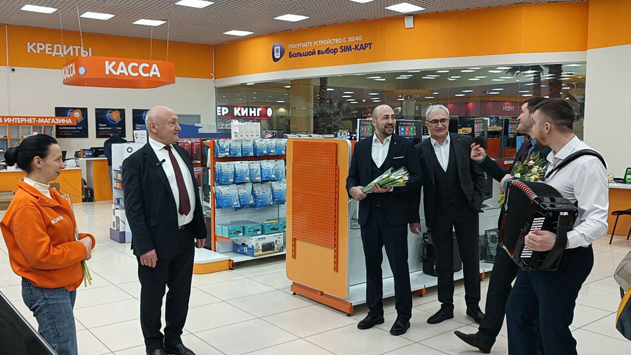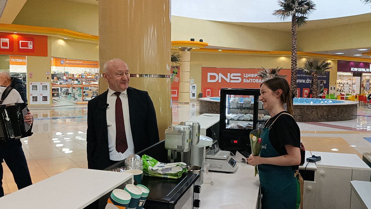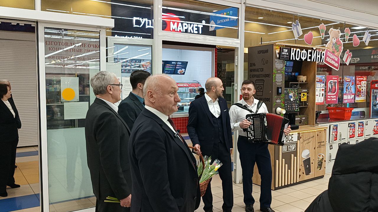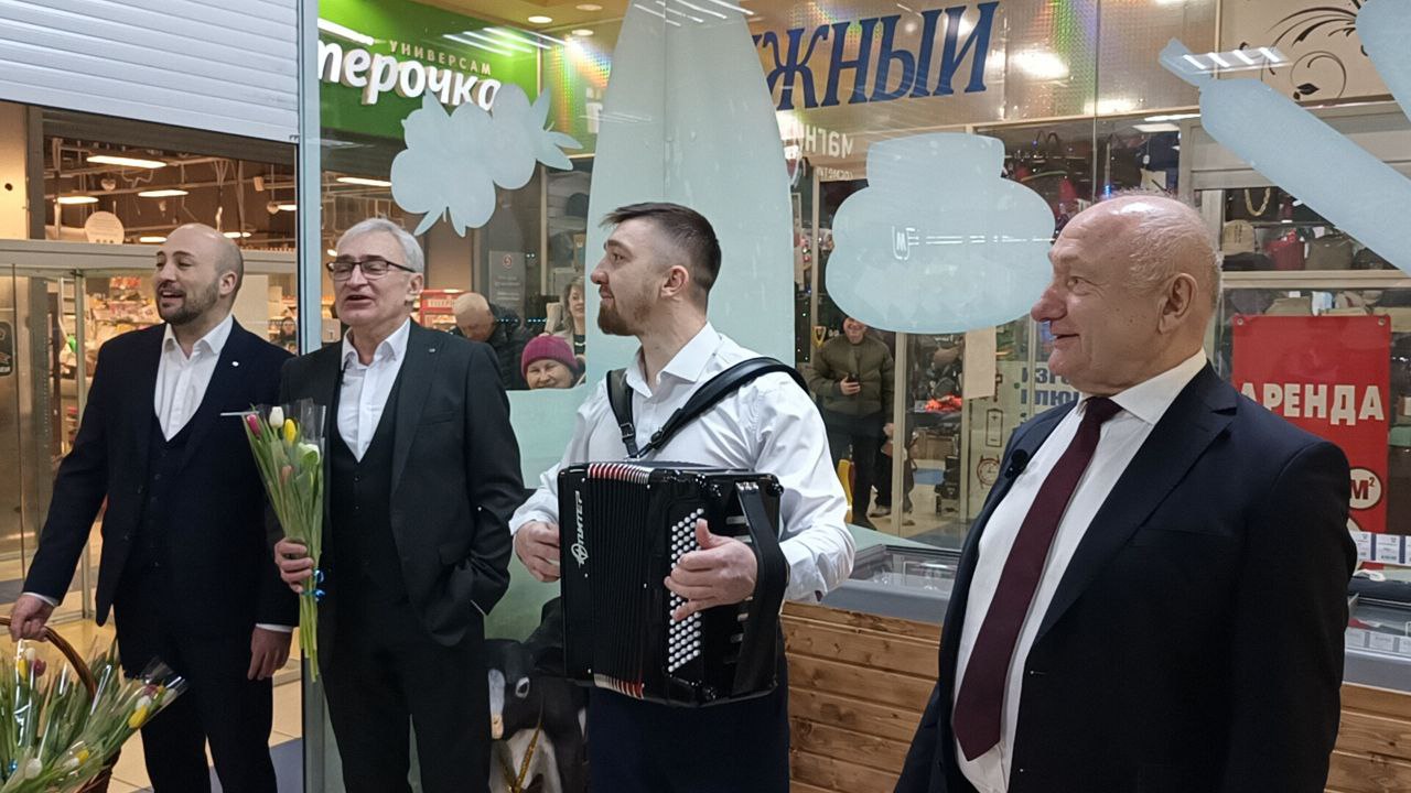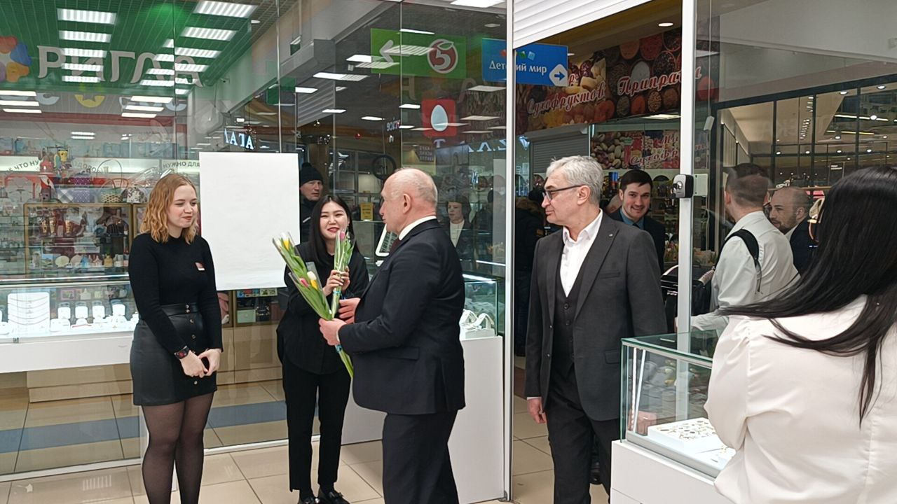 Вместе с участниками художественной самодеятельности Сергей Маненков раздал весенние тюльпаны представительницам женского пола, которых встретил в ТРЦ «Оазис Плаза», поздравил с наступающим праздником и пожелал много красивых слов.