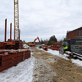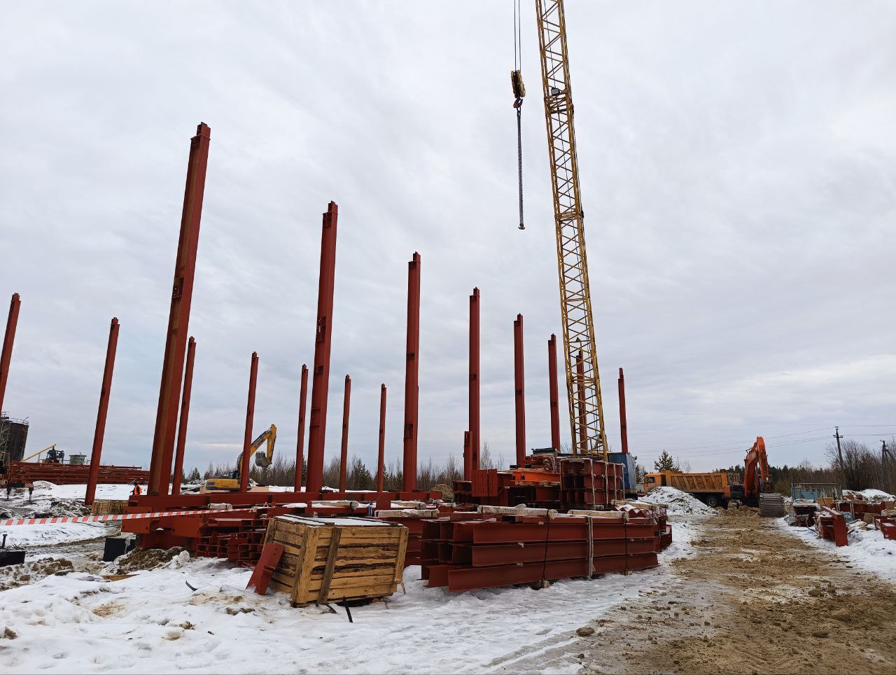 Осуществлена поставка на объект крупногабаритного технологического оборудования. Осуществлен завоз сборного металлического каркаса, кровли здания и ограждающих конструкций главного корпуса. Ведется монтаж водовода. Работы идут в соответствии с графиком.