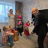 Сергей Маненков вместе с председателем Думы района Андреем Германовичем Берестовым посетили многодетную семью, глава семейства в которой выполняет свой гражданский долг по защите Отечества.