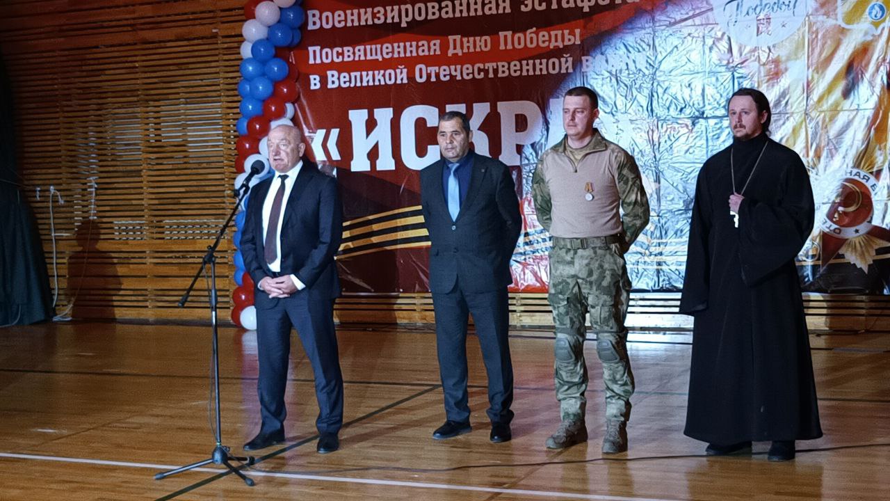 Сегодня во Дворце спорта глава территории приветствовал участников межмуниципальной военизированной эстафеты «Искра», посвящённой 79 годовщине Победы в Великой Отечественной войне