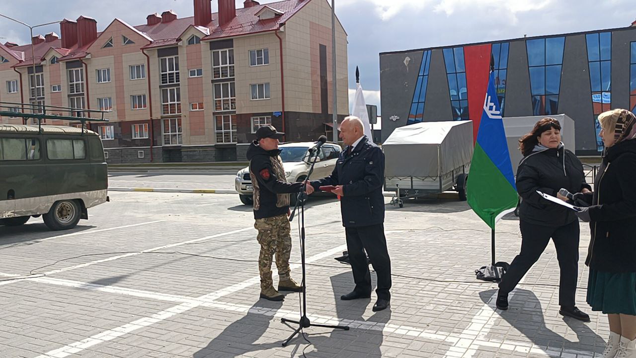 Бойцы отправляются на двух автомобилях – ВАЗ-Ниве и УАЗ - 452. Я благодарен управляющим компаниям, в том числе руководителю «СИТ», депутату Совета депутатов г.п. Белоярский Шихалиеву Руслану, НКО «Надежда», за собранные средства на приобретение автомобиля УАЗ. А также коллективу УТТиСТ за проведение технического обслуживания данного транспортного средства.