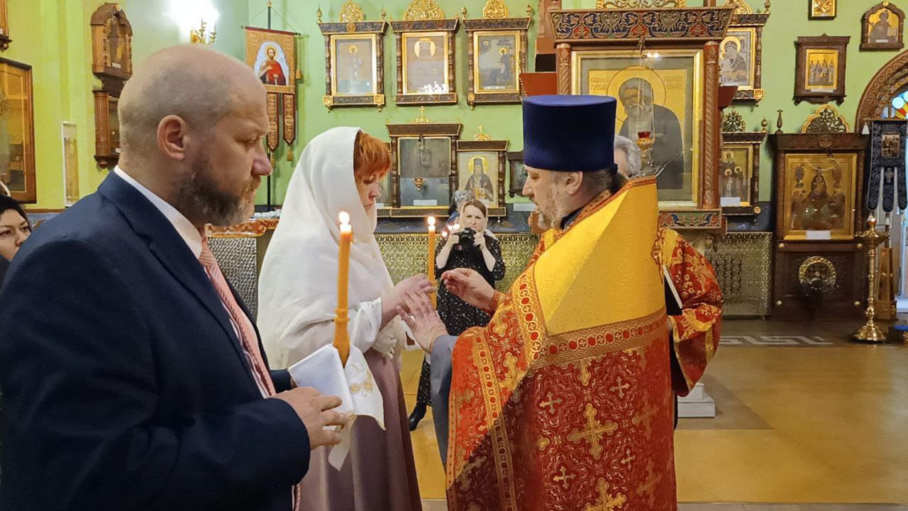 Глава муниципалитета сегодня в храме Серафима Саровского принял участие в таинстве венчания семейной пары Дубининых