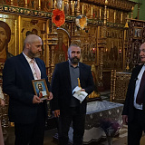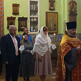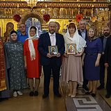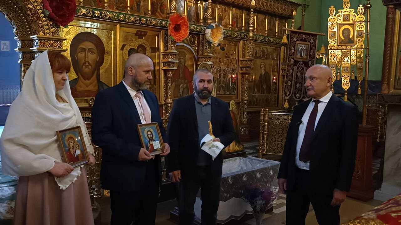 Глава территории поздравил венчающихся с церковным браком, подарил памятные подарки. Пожелал духовного единства, благословенного воспитания детей, сил претерпевать житейские трудности, прощать, любить по-настоящему.