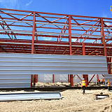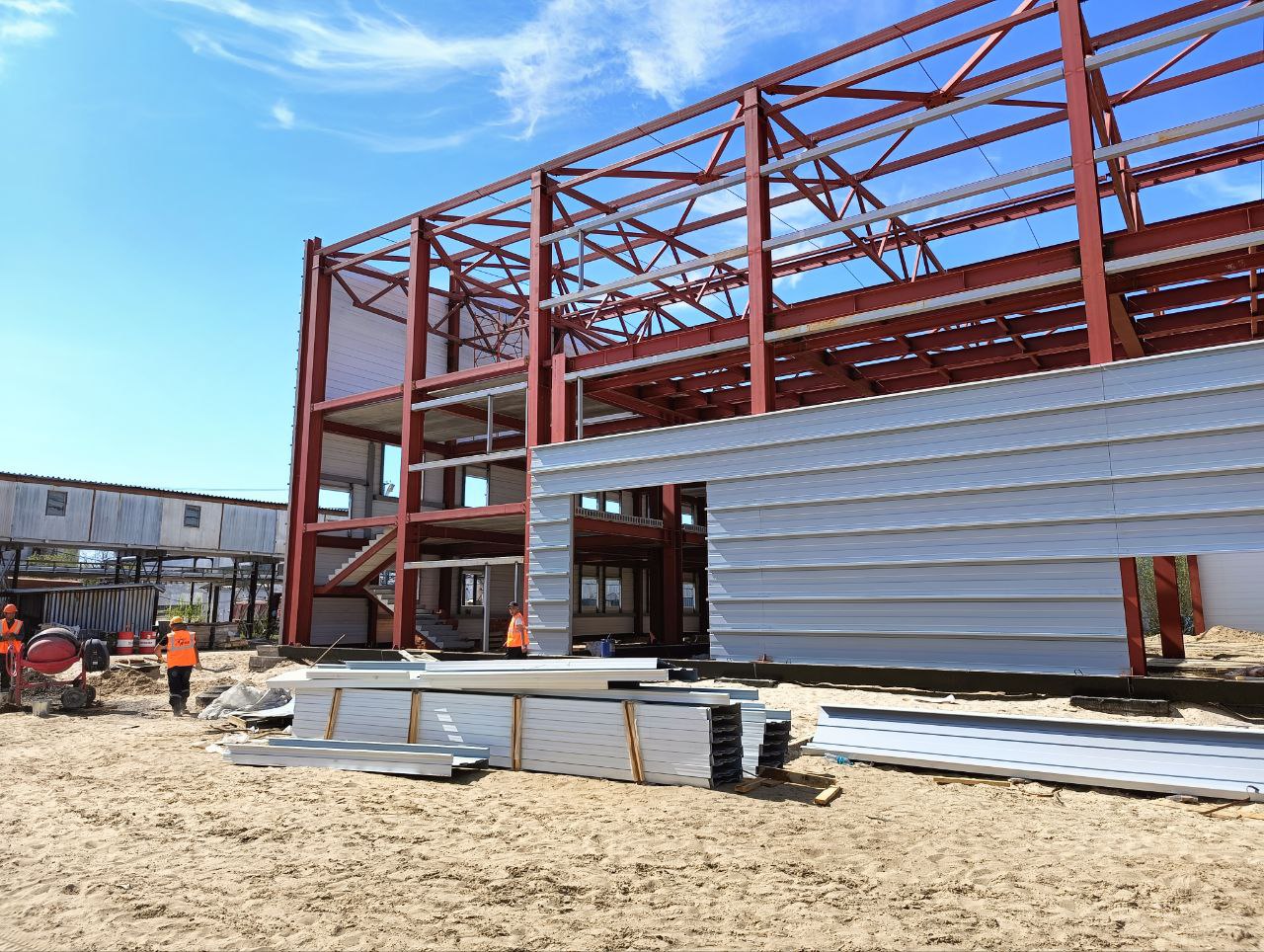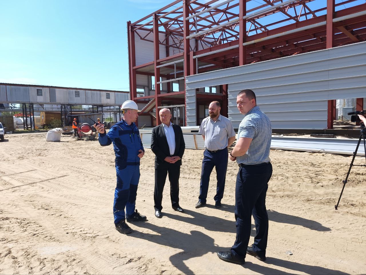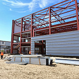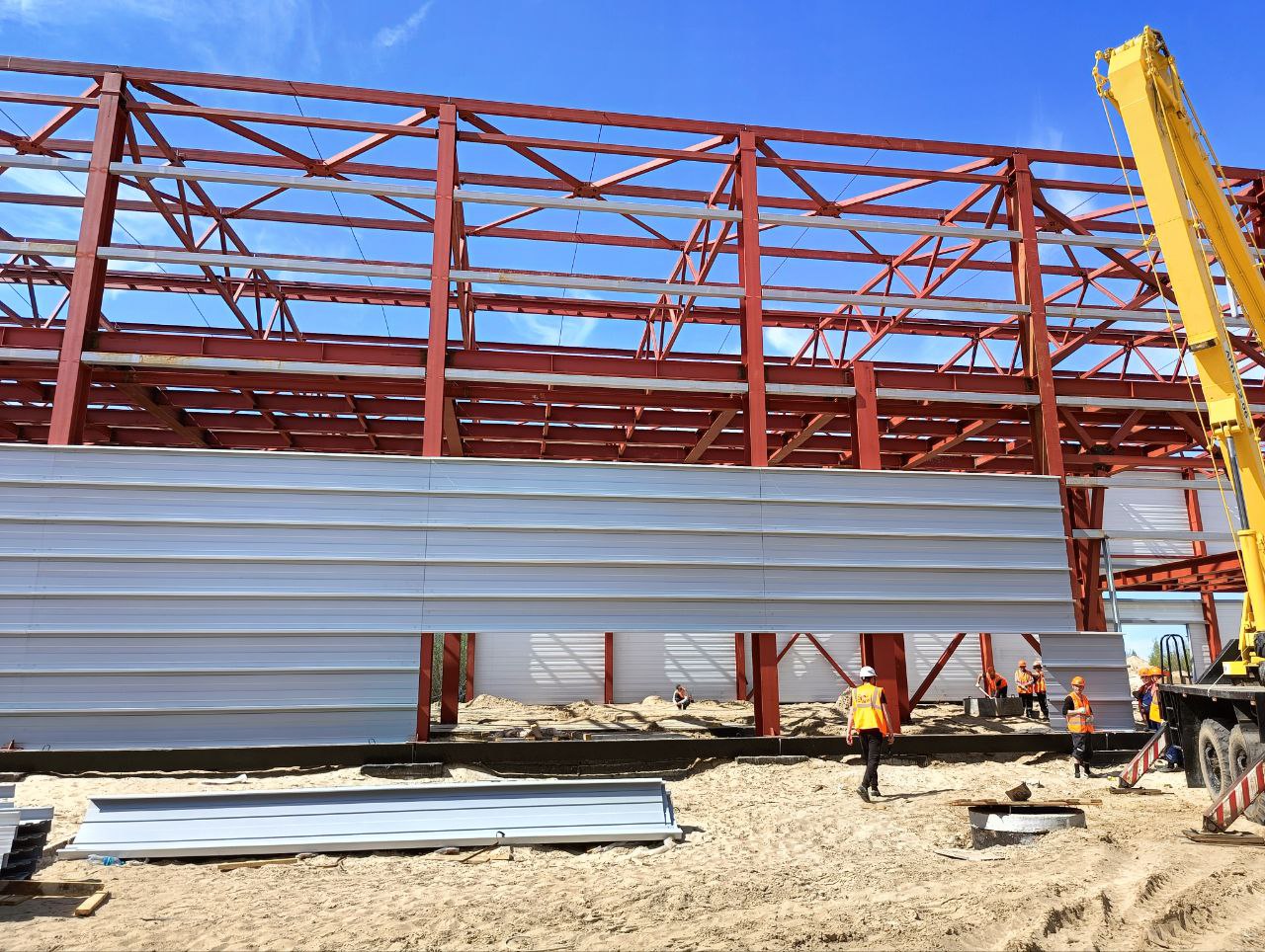 На сегодняшний день на объекте завершены работы по устройству несущего каркаса нового здания и ведется монтаж стеновых ограждающих конструкций.