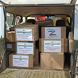 В машину загрузили гумпомощь бойцам. Это продукты питания длительного хранения, медикаменты, средства личной гигиены.