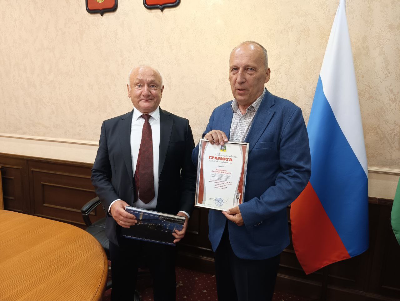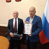 Сергей Маненков вручил Благодарственную грамоту заместителю начальника управления, начальнику отдела сельского хозяйства, природопользования и коренных малочисленных народов Севера Александру Войтеховичу за многолетний добросовестный труд.
