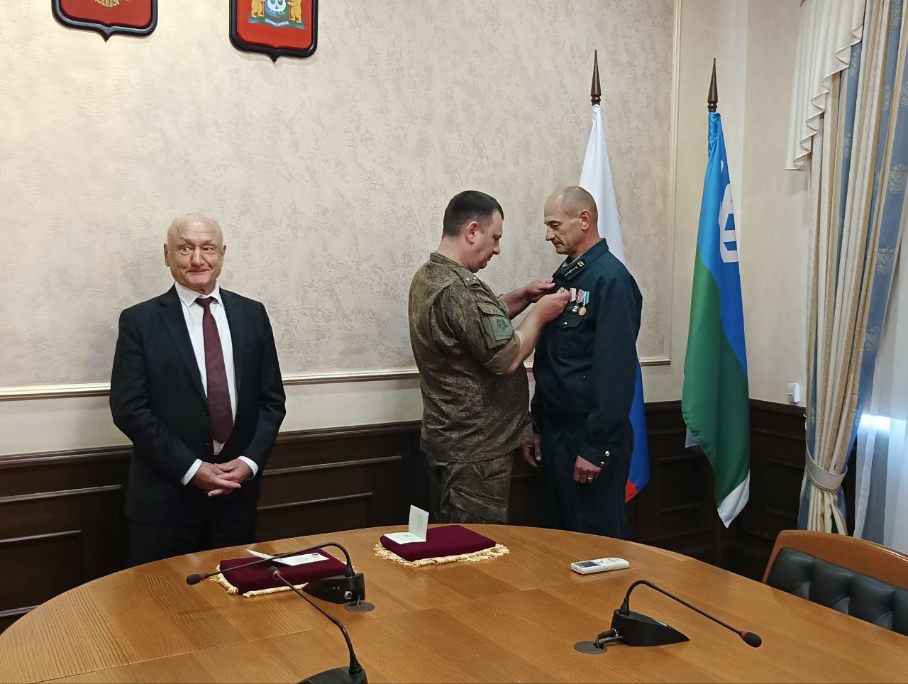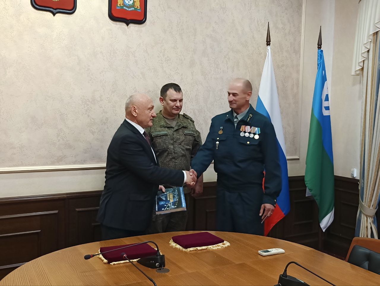 В начале встречи в торжественной обстановке глава муниципалитета вместе с ветеранами боевых действий вручили медаль «За храбрость» II степени Михаилу Сапелко, а также выдали удостоверение ветерана боевых действий Владимиру Курикову. Поздравили участников СВО и поблагодарили за доблестную службу, достойное выполнение воинского и гражданского долга.