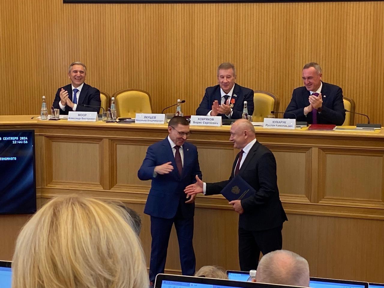На заседании Думы Югры полномочный представитель Президента в УрФО Владимир Якушев вручил Сергею Петровичу Благодарственное письмо Президента Российской Федерации.