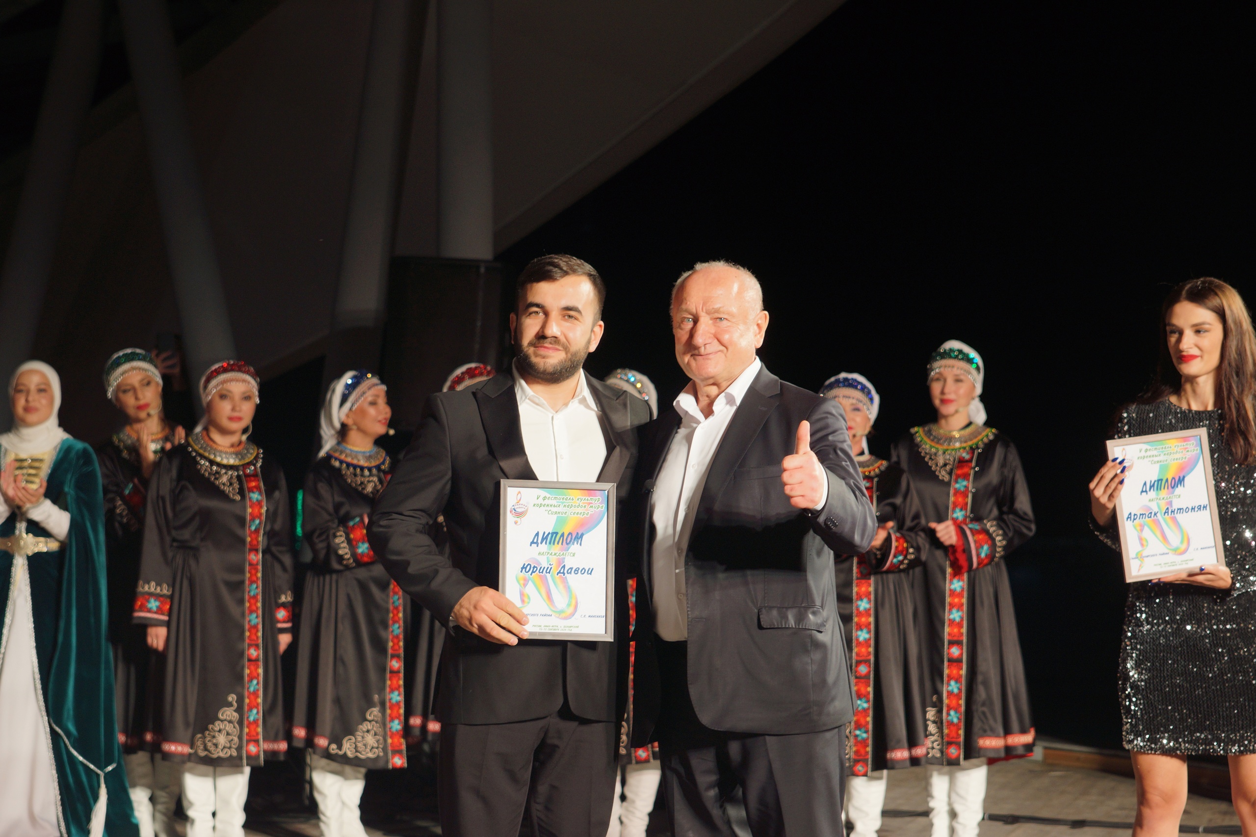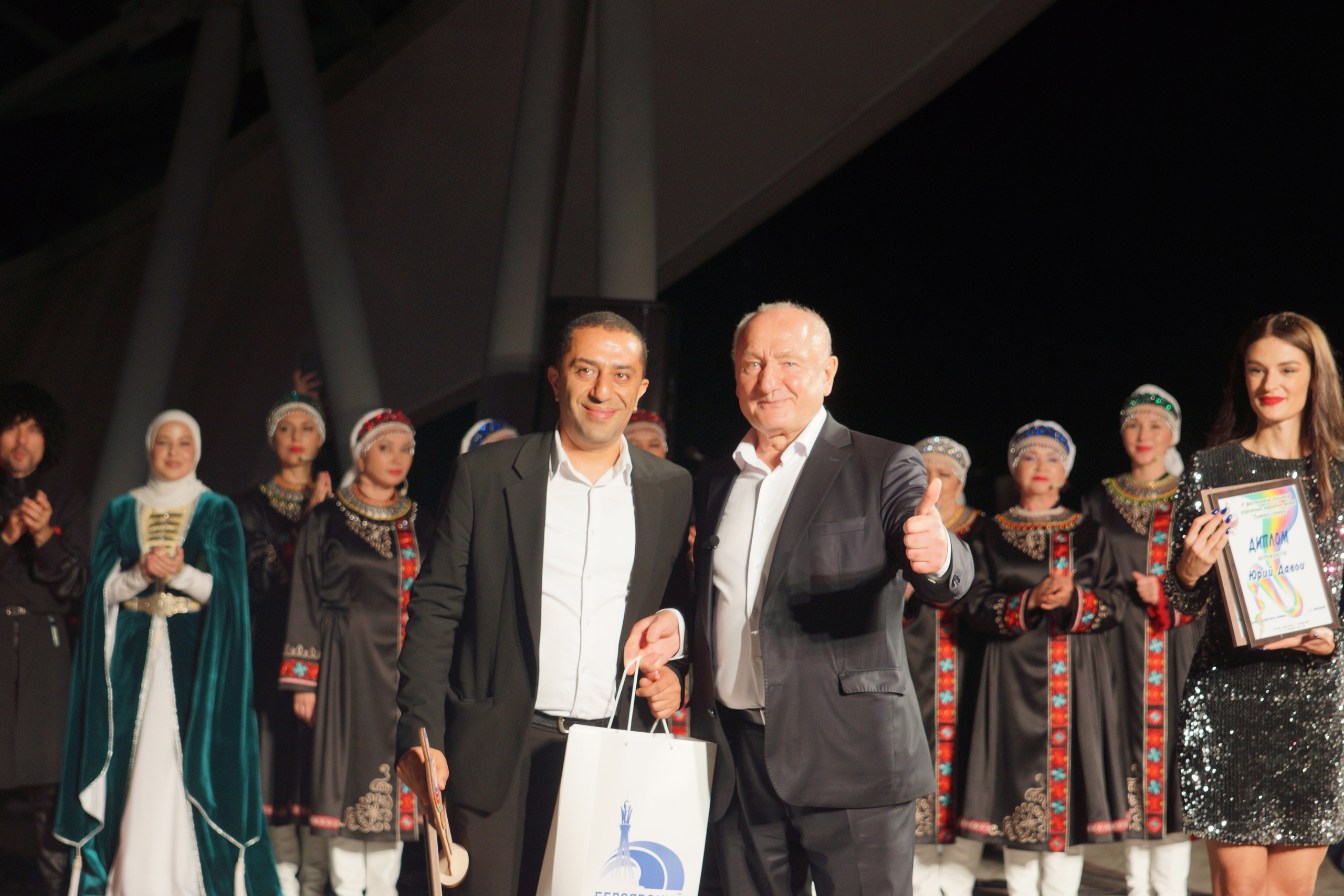 Традиционным праздничным подарком стал костюмированный дог-парад. Четвероногие участники и их хозяева вновь порадовали зрителей своей непосредственностью. Одним из самых ярких моментов, конечно, стало выступление артистов-участников фестиваля культур коренных народов мира «Сияние Севера». Белоярцы встретились с уже знакомыми и полюбившимися артистами, и познакомились с новыми талантами. Даже внезапный дождь не смог помешать празднику, и фестиваль прошел на ура! Завершились праздничные мероприятия эстрадным концертом. Зрители тепло приветствовали артистов, пели вместе с ними.