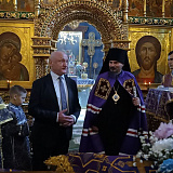 Сергей Маненков принял участие в Божественной литургии в храме Преподобного Серафима Саровского, которую совершили представители духовенства Белоярского благочиния и епископ Югорский и Няганский Михаил