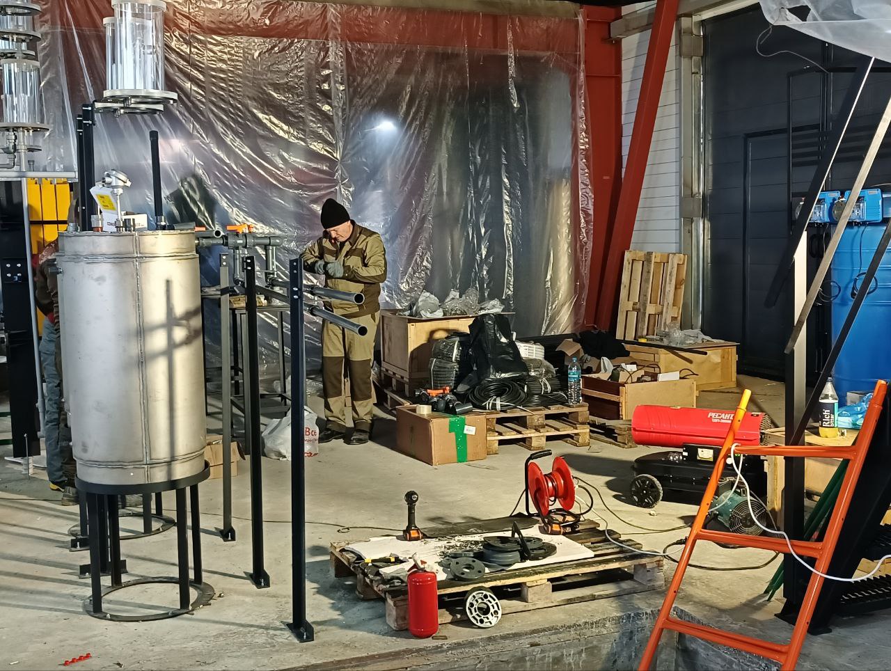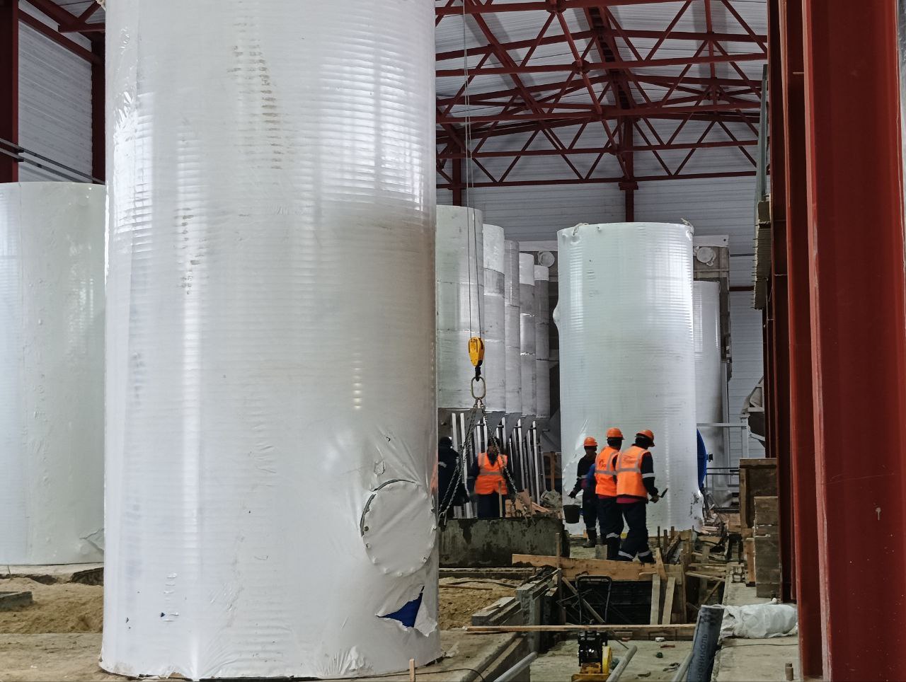 На сегодняшний день на объекте ведутся работы по монтажу технологического оборудования, его обвязки, по устройству технологических локотков для прокладки инженерных коммуникаций.