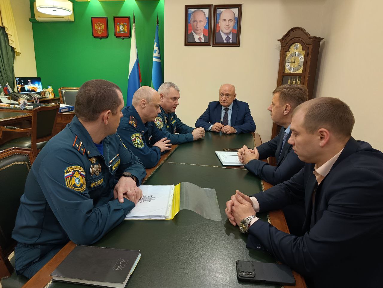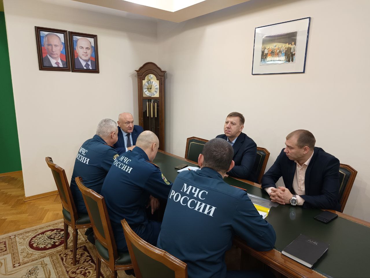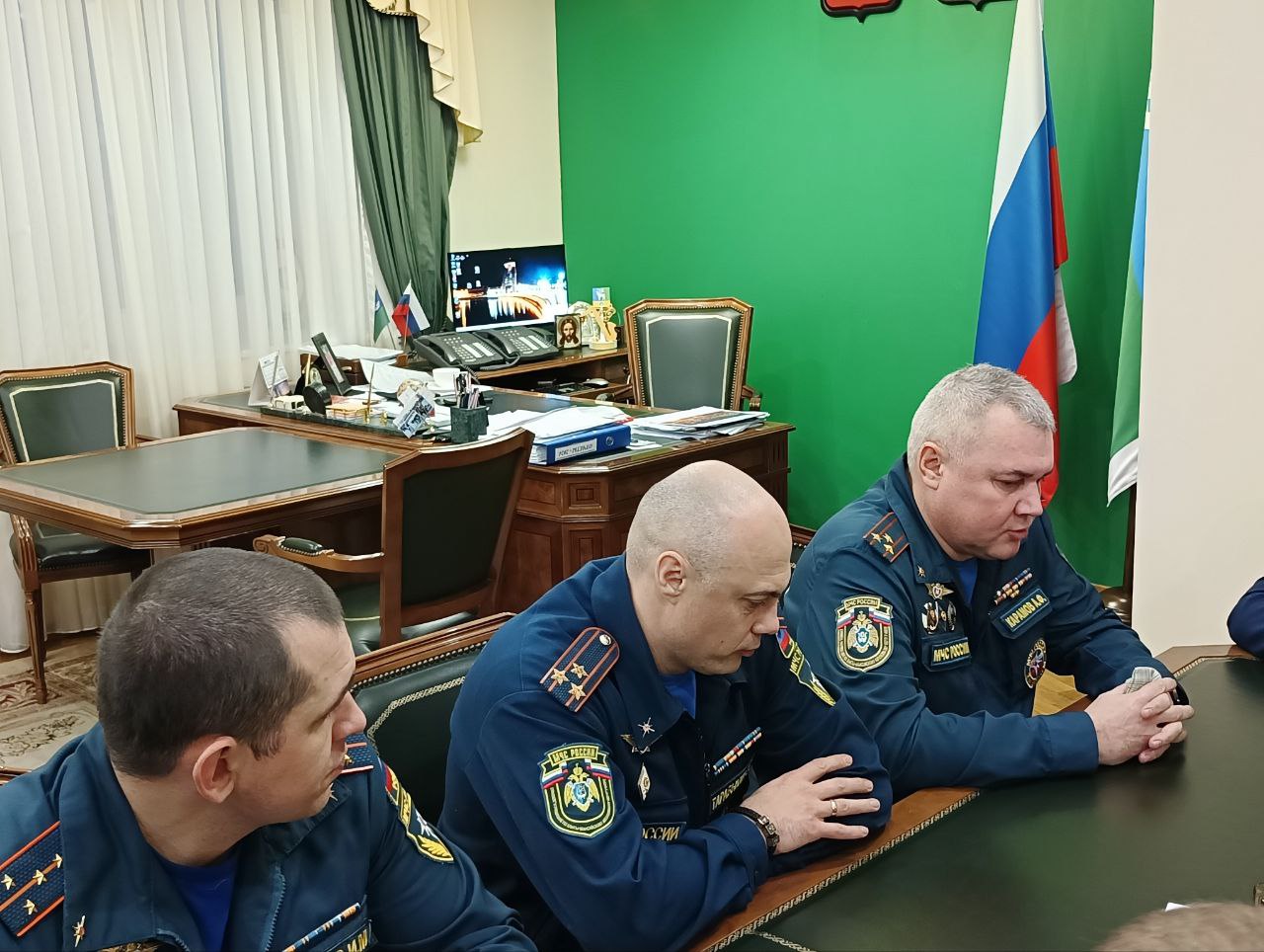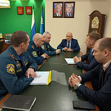 Сегодня глава района провел рабочую встречу с гостями территории - заместителями начальника управления гражданской обороны и защиты населения Главного управления МЧС России по Югре Айдаром Фаузеевичем Карамовым и Евгением Владимировичем Тарабыкиным.