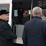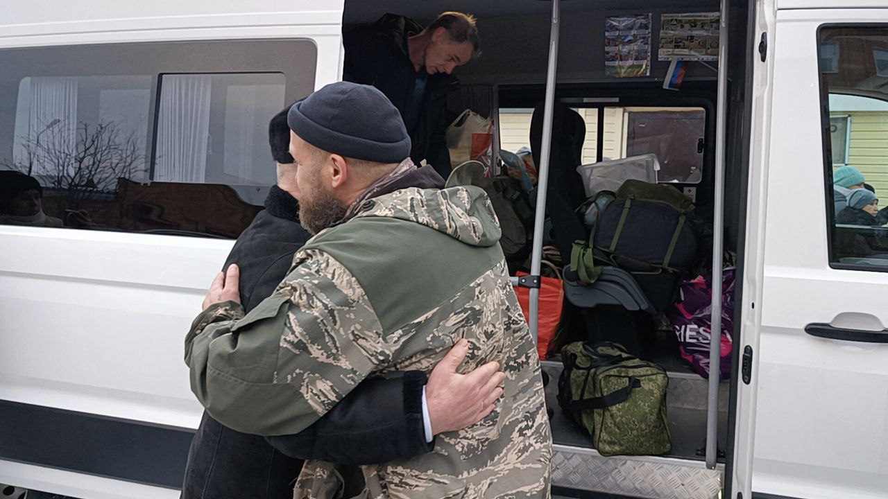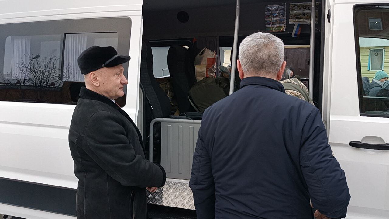 Михаил и Алексей отправляются в зону боевых действий на личном транспорте. Встретился с бойцами лично, чтобы пожать руку и проводить с напутственными словами в дорогу.